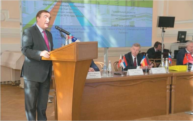 После этого в Зале Торжеств МИИТ ректор университета Б.А. Лёвин открыл работу крупного научного форума - Международной научно-практической конференции «Транспортные системы: тенденции развития». О масштабах форума говорит то, что его участниками стали более тысячи человек из 12 стран мира.