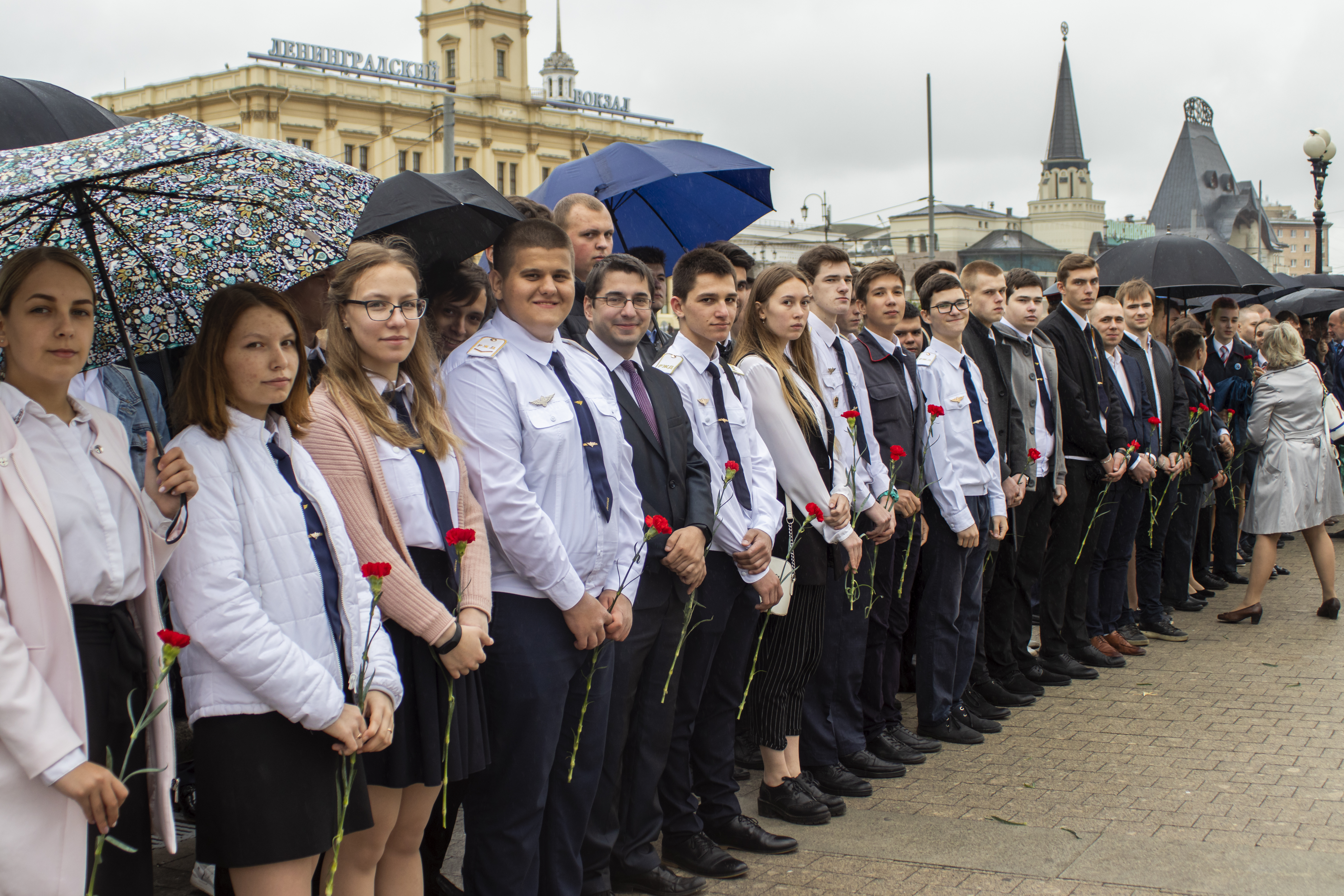 Возложение цветов к монументу является традицией и проходит на главной железнодорожной площади России, где расположены три крупнейших вокзала