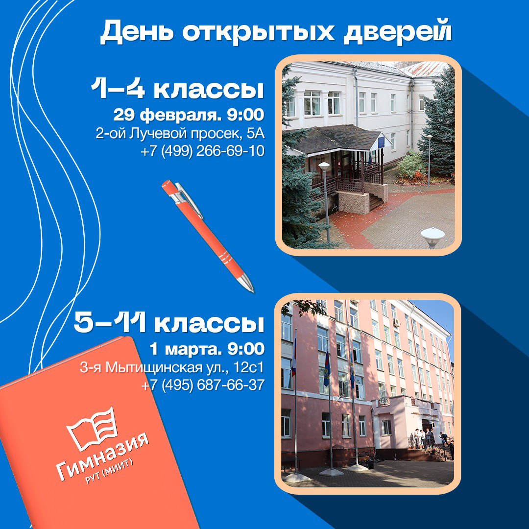 Гимназия РУТ (МИИТ) приглашает на Дни открытых дверей.