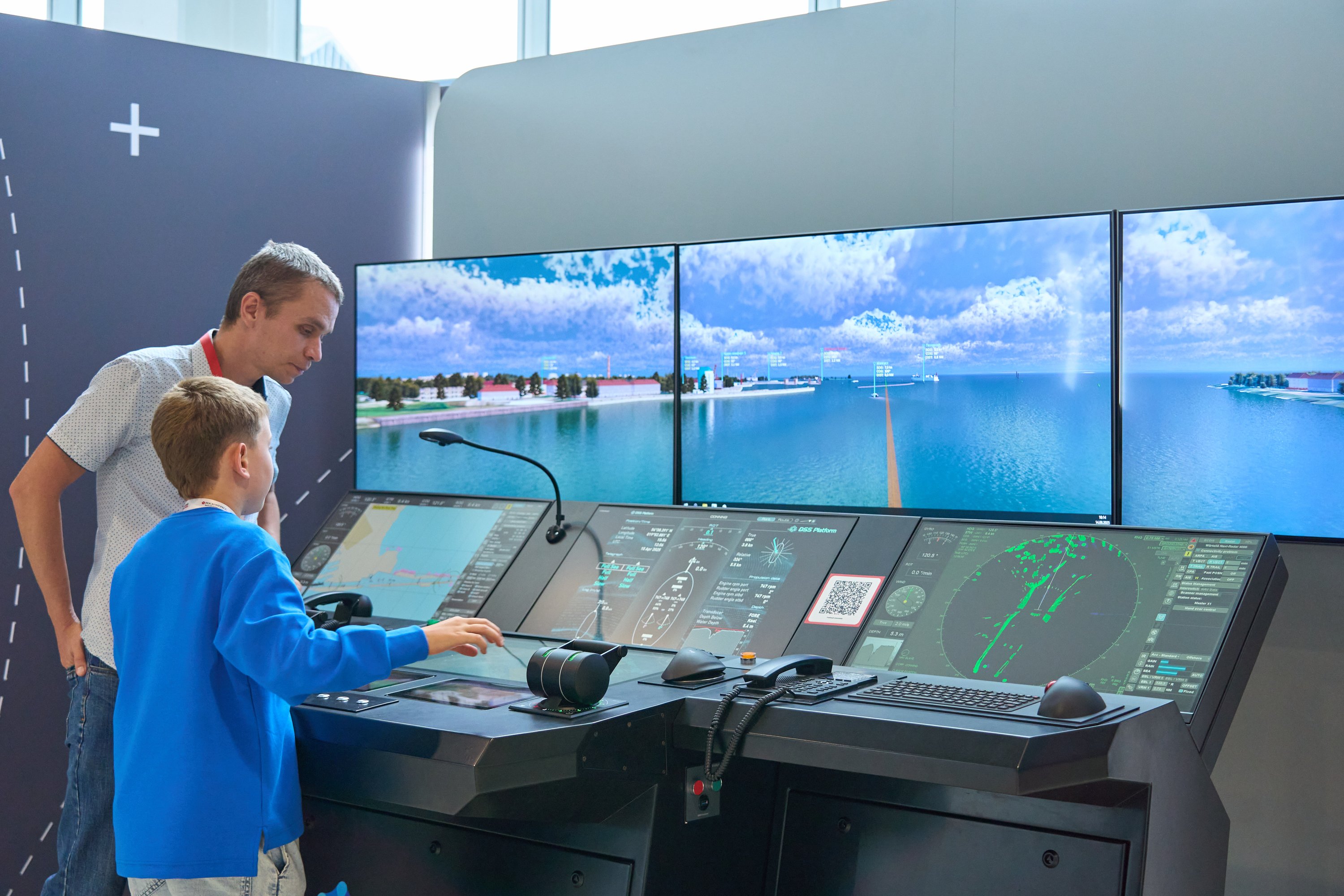 Вторая разработка, презентованная РУТ, — это тренажёр, предназначенный для отработки навыков по управлению и маневрированию автономными судами. С помощью VR он полностью имитирует судовое оборудование, включая приборы и устройства, а также моделирует погодные и навигационные условия самых популярных акваторий морских участков и портов в режиме реального времени. На таких тренажёрах готовятся и проходят сертификацию судоводители, экипаж судов, операторы системы управления движением, персонал центра дистанционного управления. На сегодняшний момент тренажёр не имеет зарубежных аналогов.
