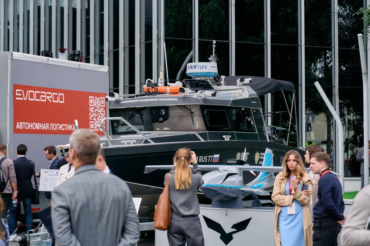 На международном форуме «Беспилотные системы: технологии будущего» Российский университет транспорта представил сразу две свои разработки на стенде Министерства транспорта:автономный катер и тренажёр для подготовки специалистов по эксплуатации автономных судов и технологий автономного судоходства. В форуме участвовали ректор РУТ Александр Климов и проректор Сергей Соколов.