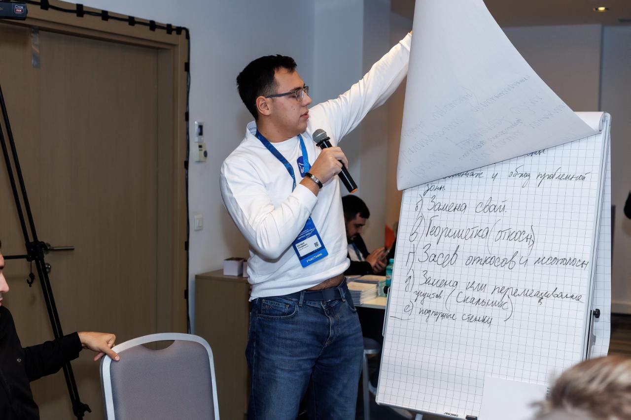Шесть студенческих команд из профильных вузов Москвы, Омска, Лермонтова и Грозного — РУТ, СибАДИ, Северо-Кавказского института (филиала МАДИ) и ГГНТУ имени академика М.Д. Миллионщикова — решали реальную производственную задачу. За 30 минут нужно было проанализировать представленный кейс по строительству дороги в сложных условиях, выявить проблему и её причины, предложить свои идеи выхода из ситуации, а результаты оформить в виде схем, отражающих шаги по устранению сложностей. Участники в ходе обсуждения учились просчитывать последствия своих решений и обосновывать выбор технологий. Модератором игры выступил преподаватель Академии дорожного хозяйства РУТ, главный инженер одной из строительных организаций России Юрий Сафонов. Он предложил участникам реальную инженерную задачу, с которой сталкивались проектировщики при строительстве автомобильной дороги Владивосток — Находка в Приморском крае. Этот участок собрал в себе почти все возможные сложности дорожного строительства: слабые и заболоченные грунты, неоднородность геологического основания, риски оползней и просадок. Над решением этой задачи несколько лет работали профессиональные инженеры, проектировщики и геологи, а проект прошёл три экспертизы — предыдущие институты не сумели выявить все проблемные зоны. По словам эксперта, все команды достойно справились с кейсом. «Ребятам была поставлена амбициозная задача — за 30 минут представить план действий и своё видение, как решить эту инженерную проблему. Справились? Все справились! Нужно было чётко мыслить, грамотно формулировать инженерные решения, выстраивать причинно-следственные связи. Чувствуется понимание материала и системное мышление — я впечатлён», — отметил Юрий Сафонов. Эксперт подчеркнул, что подобные кейсы дают студентам редкую возможность увидеть, как принимаются инженерные решения в реальных условиях строительства — когда есть сроки, риски и ответственность за объект. Участники не только предлагали теоретические варианты, но и учились просчитывать последствия своих решений и аргументировать выбор технологий.