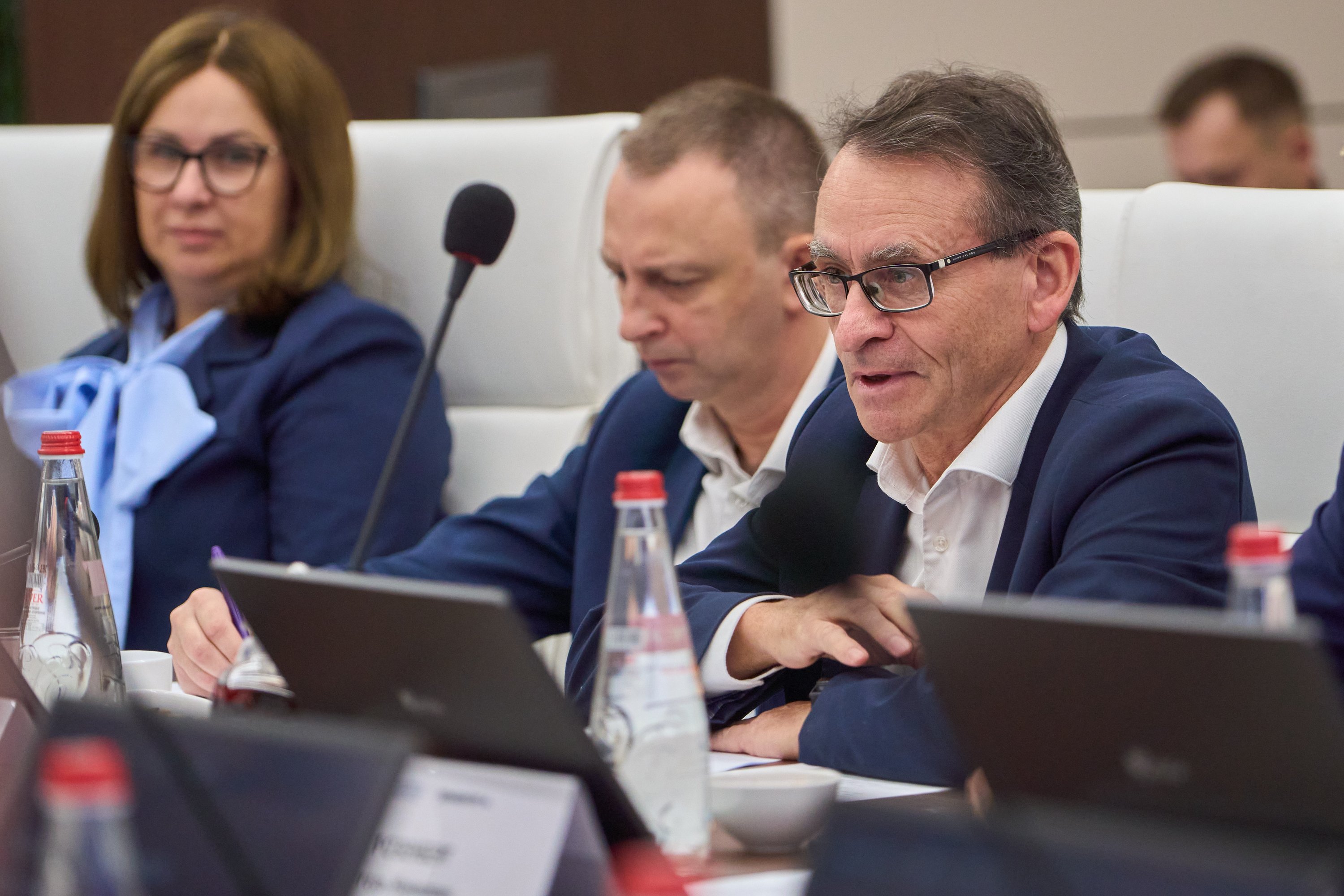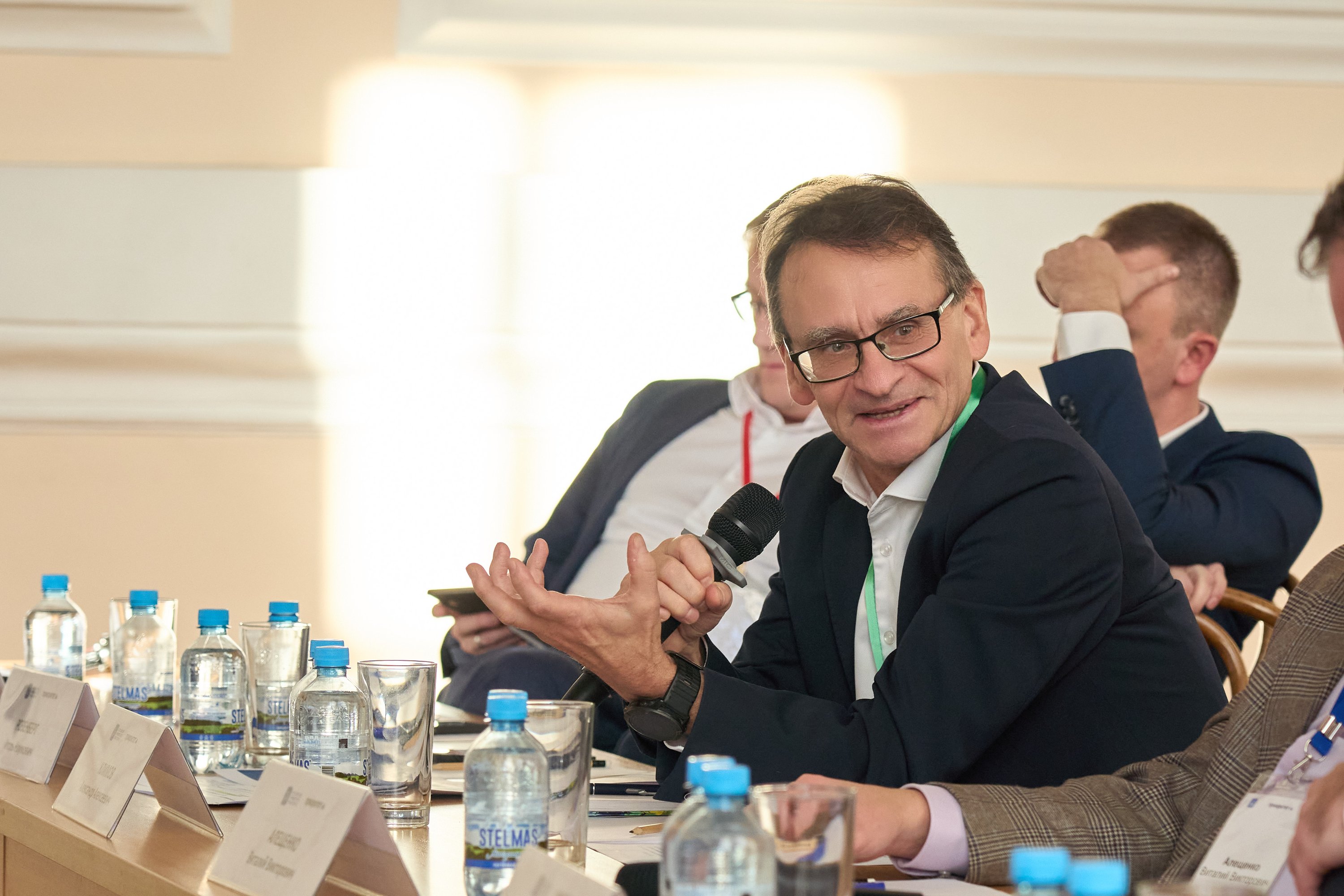 Мероприятие началось с презентации ключевых результатов РУТ в области технологического лидерства. Ректор Александр Климов рассказал, как менялся университет за время участия в программе «Приоритет 2030», и о том, что в рамках реализации программы развития были созданы «Высшая инженерная школа», Академия дорожного хозяйства, Академия гражданской авиации.
