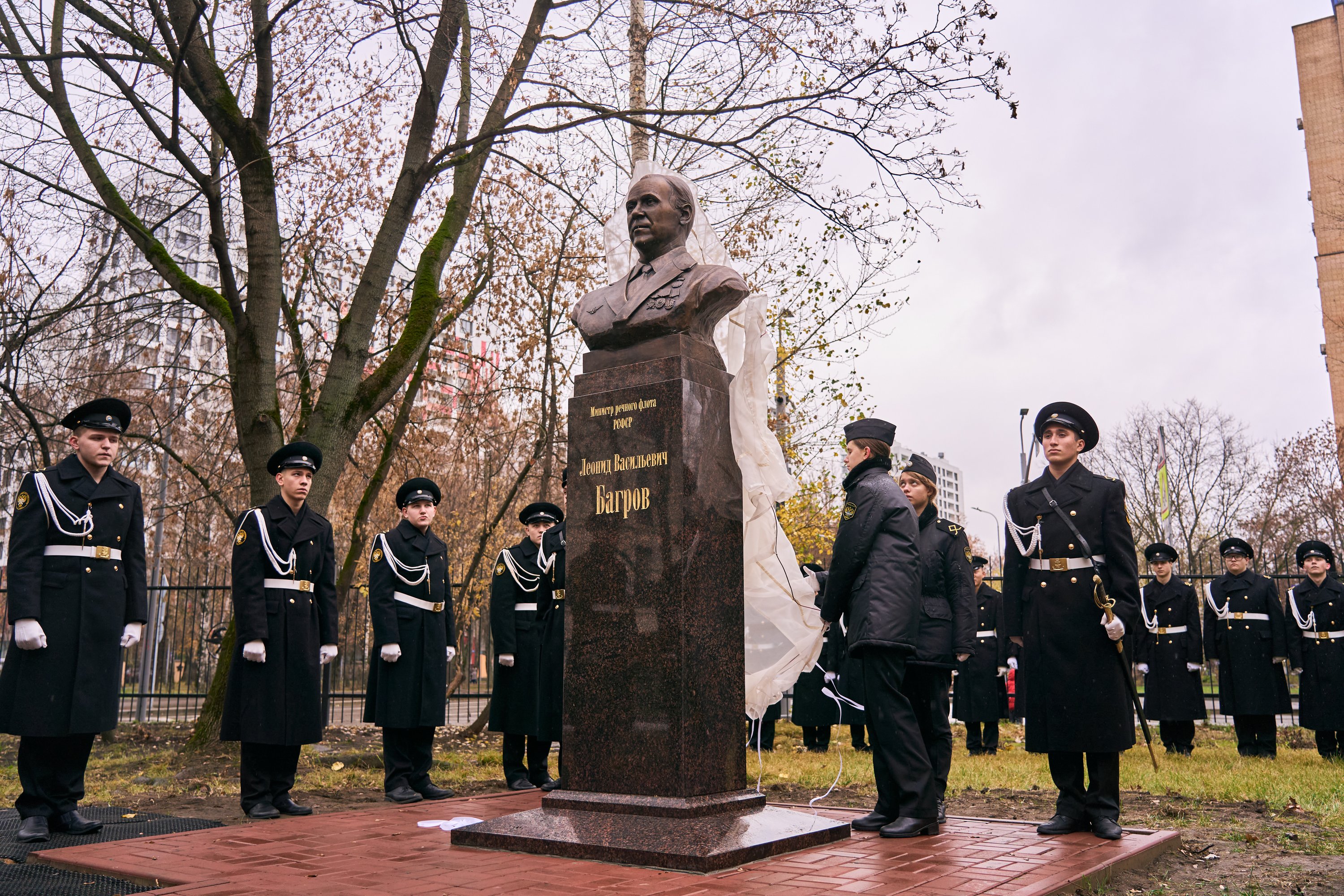 В Академии водного транспорта Российского университета транспорта состоялось торжественное открытие памятника Министру речного флота РСФСР Леониду Васильевичу Багрову, имя которого носит Колледж Академии. Дата выбрана не случайно — в этот день Леониду Васильевичу исполнилось бы 94 года.