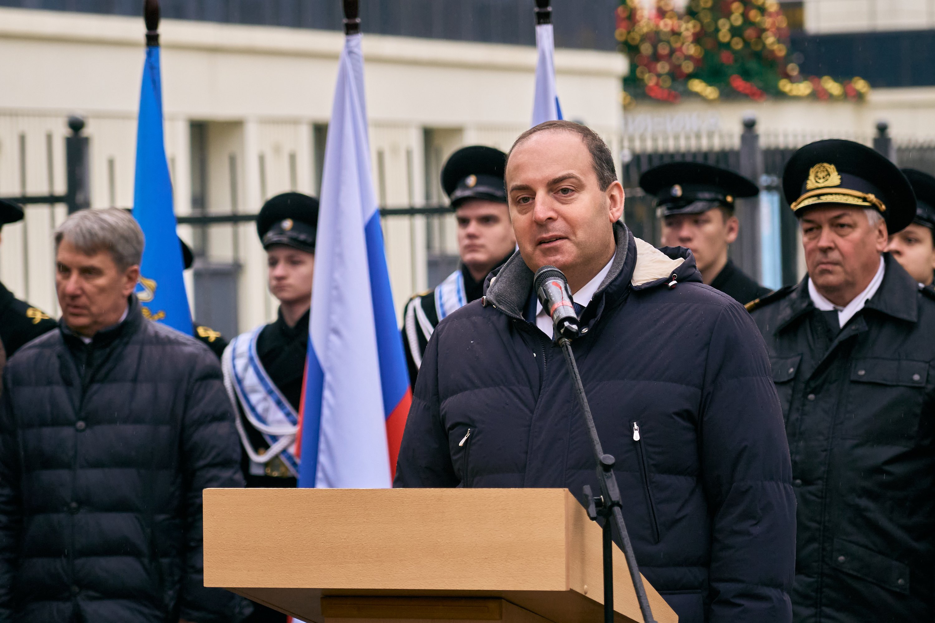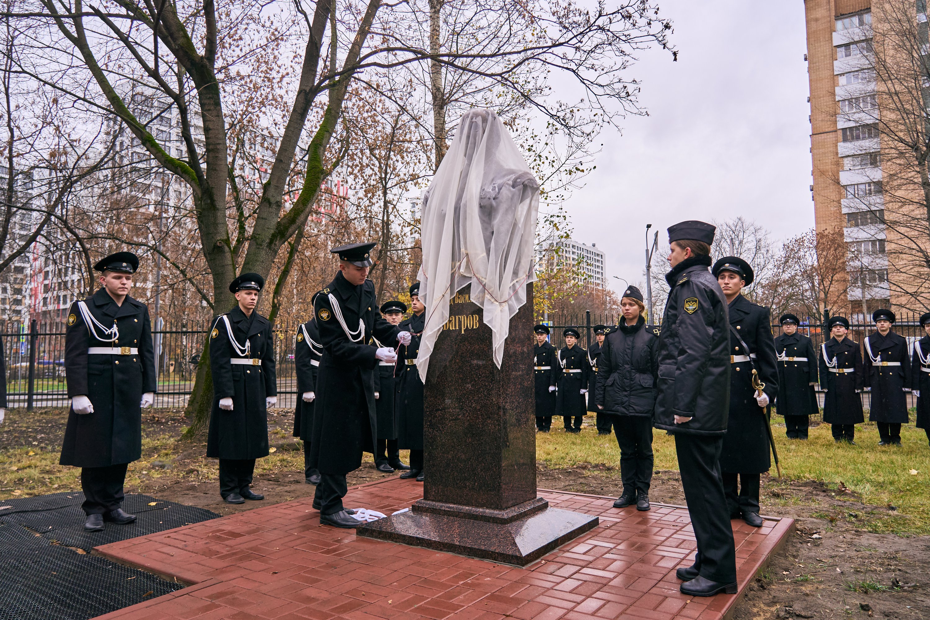 Под барабанную дробь курсантка колледжа, обладательница значка «Юный моряк» и выпускница клуба юных моряков имени Петра Великого Екатерина Амонская и курсант Академии, набравший наивысший балл при поступлении, Иван Стемплевский сняли покрывало с памятника. После этого гости возложили цветы в память о выдающемся руководителе, человеке, который вдохновлял окружающих своим трудом и преданностью делу и внёс огромный вклад в развитие речного флота.