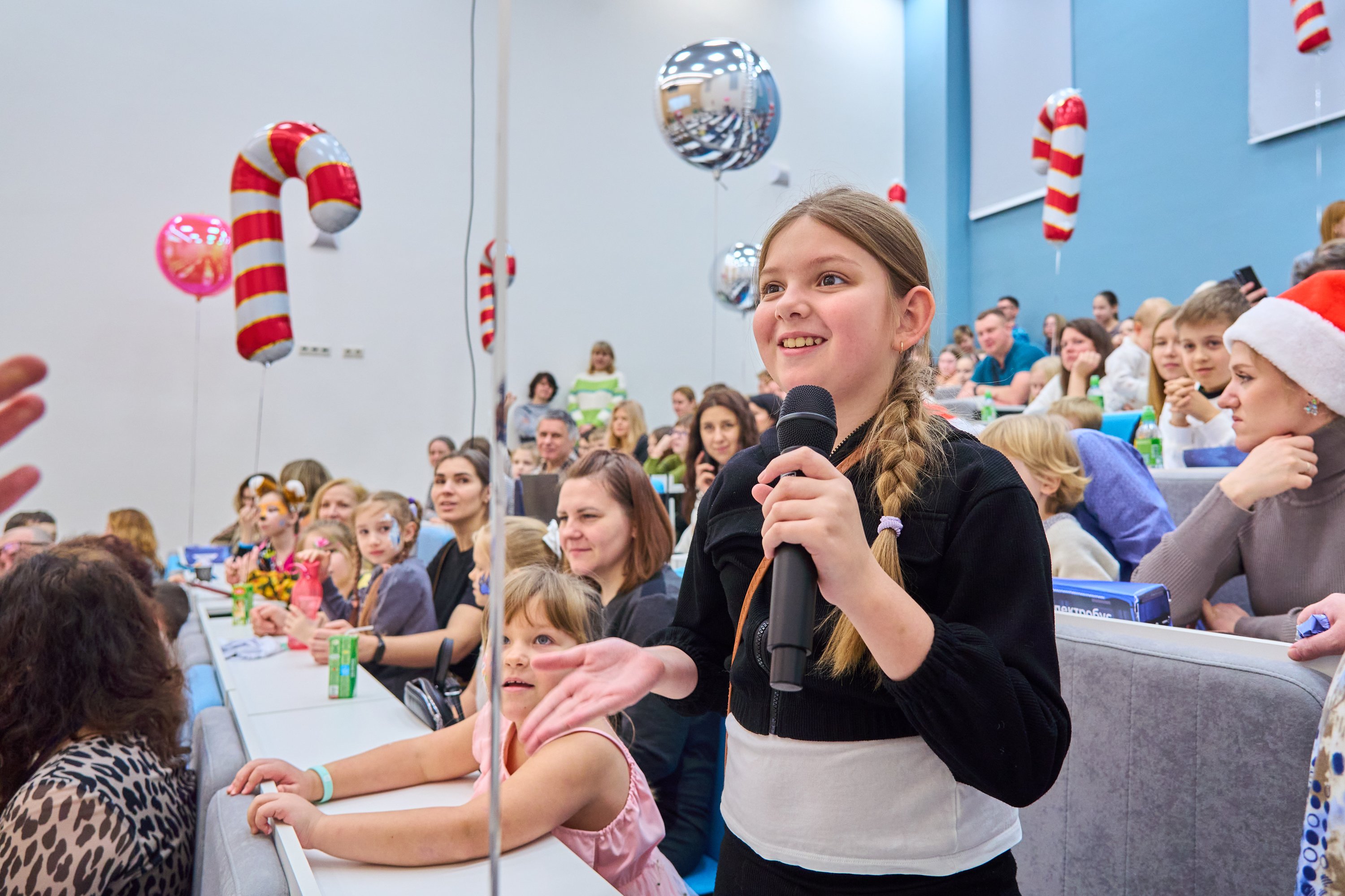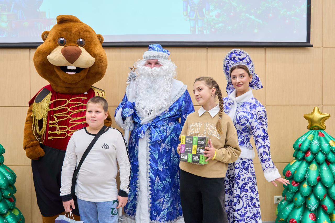После активностей Дед Мороз и Снегурочка вручили детям вкусные угощения и памятные подарки, с которыми дети смогут проводить исследования дома. Самые активные ребята участвовали в новогодней викторине, где за каждый правильный ответ дети получали спецпризы.