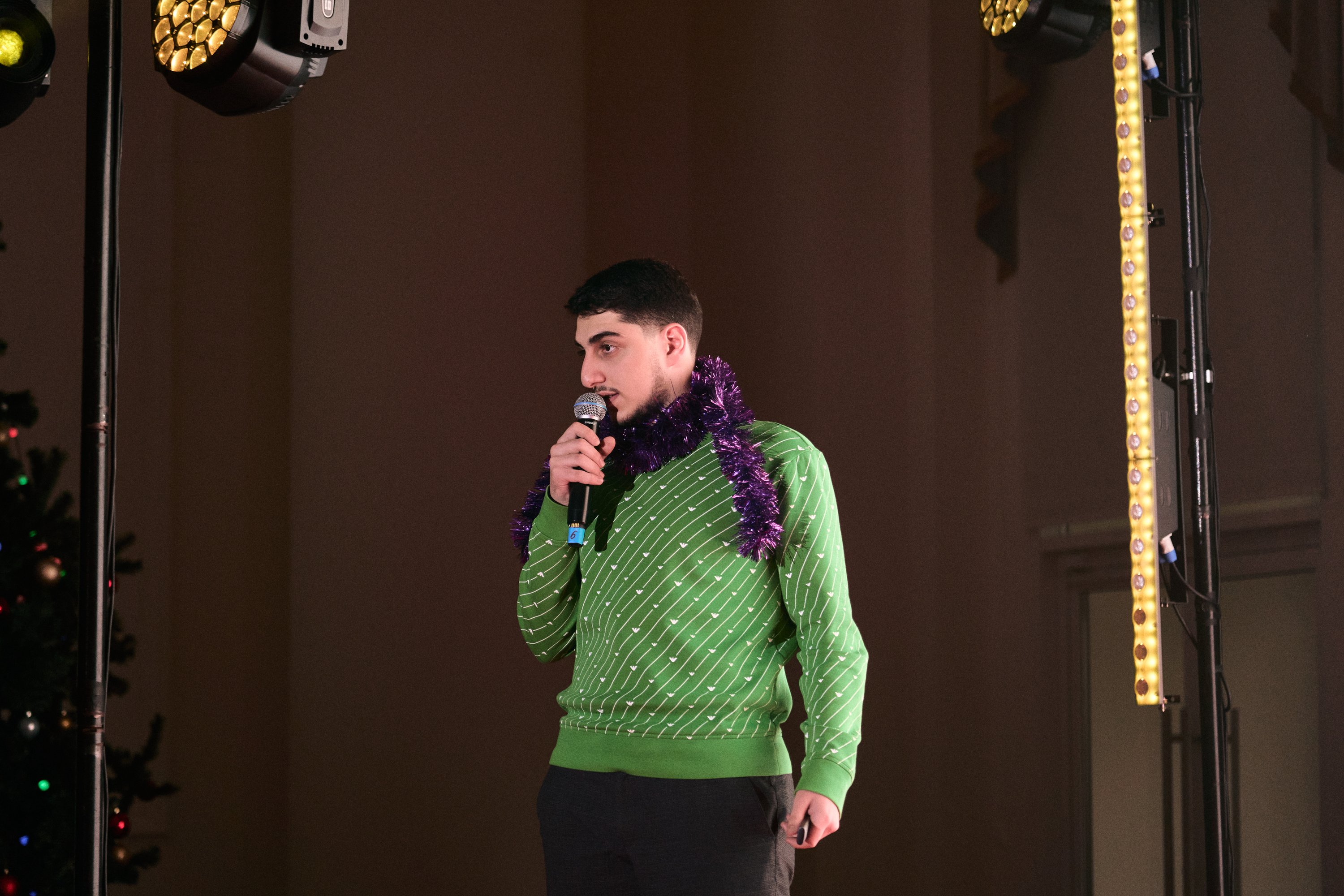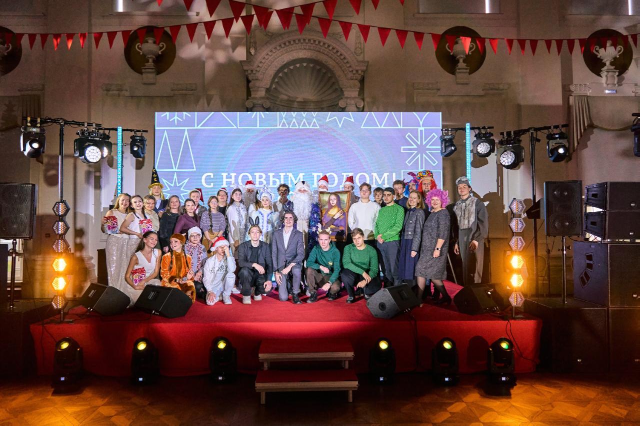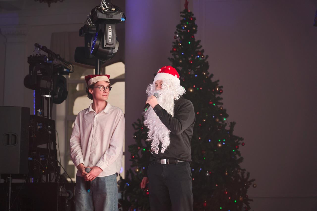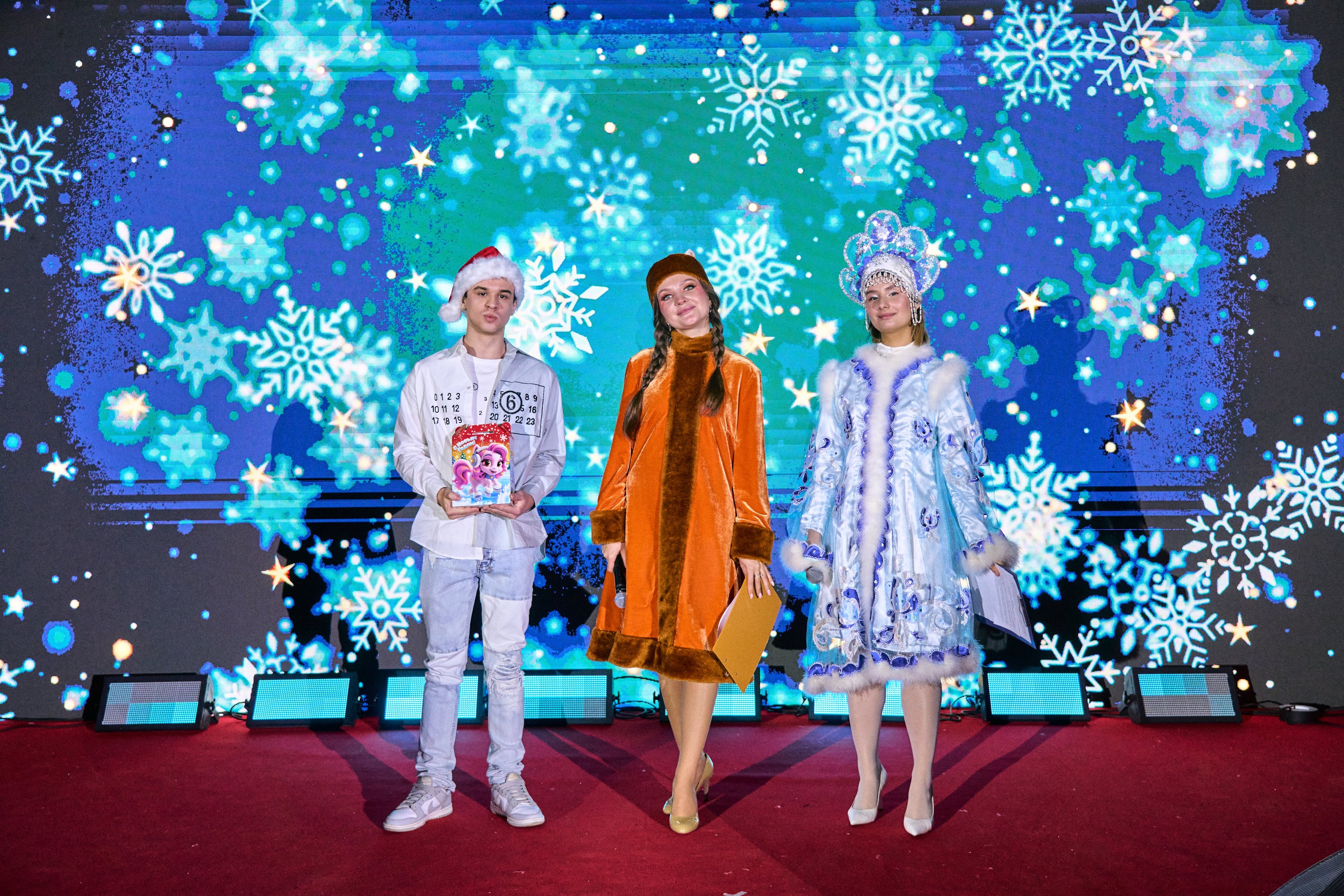 На сцене разыгралось настоящее представление: Лиса (Варвара Романова), Волк (Михаил Палинов) и Снегурочка (Милена Сапегина) искали Деда Мороза (Владислав Павленко), попутно знакомя аудиторию с разработками студентов. Команды представили проекты: