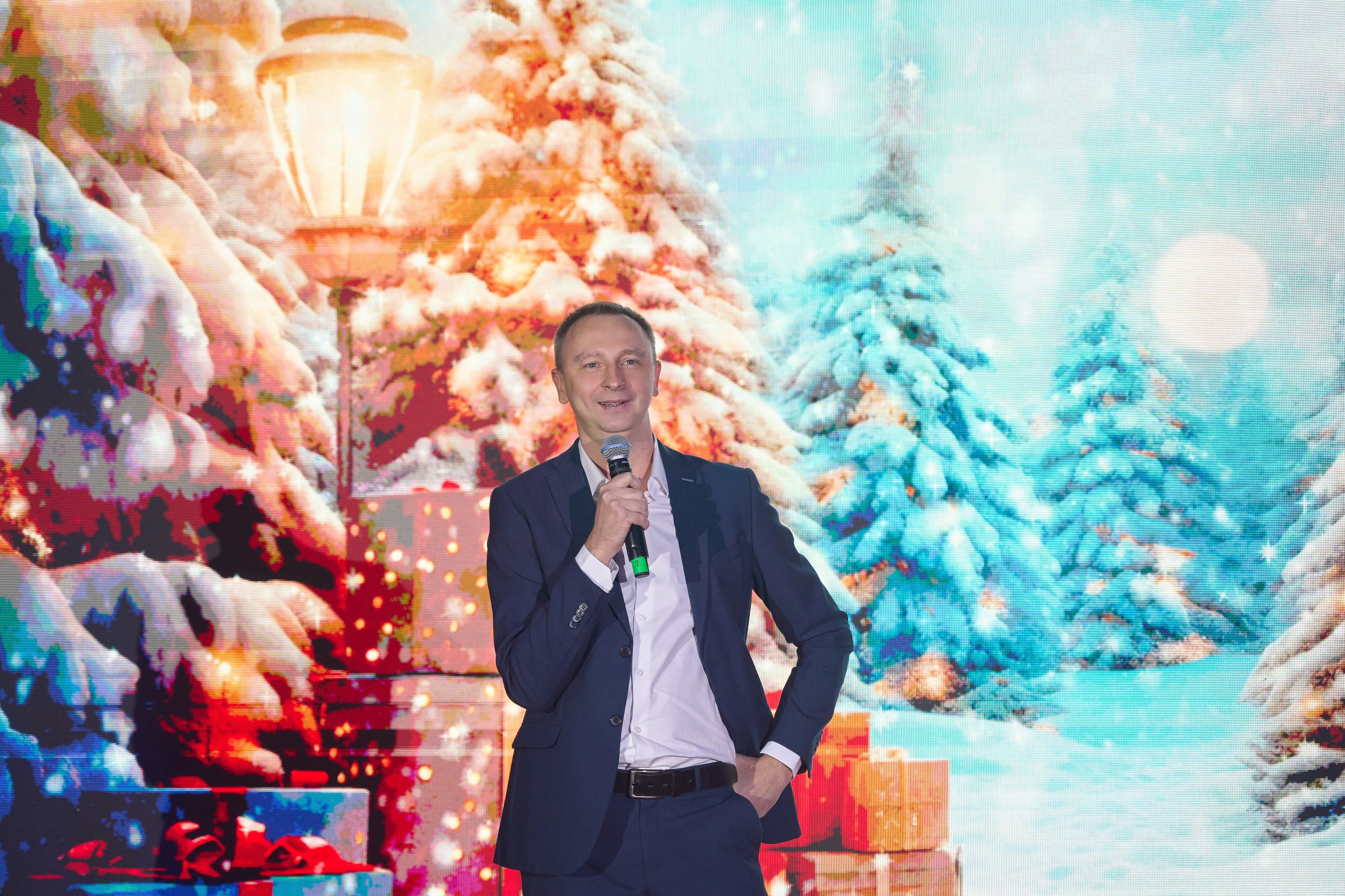 Праздник открыл первый проектор РУТ Владимир Тимонин. Он поздравил присутствующих с наступающим Новым годом и объяснил необычный формат подведения итогов проектной деятельности: «Решили добавить веселья, чтобы было подрайвовее. Посмотрим, как получится сочетать праздник и деловой формат презентаций настоящих проектов».