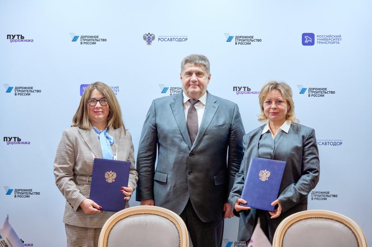 Российский университет транспорта заключил соглашения с Новгородским государственным университетом имени Ярослава Мудрого и ФАУ «РОСДОРНИИ». Стороны будут сотрудничать в кадровом и научно-образовательном направлении: совместно организовывать повышение квалификации специалистов дорожного хозяйства, научные исследования в области беспилотных и роботизированных технологий, а также проводить отраслевые семинары и конференции. Документ подписали проректор РУТ Татьяна Марканич, ректор НовГУ Юрий Боровиков и генеральный директор РОСДОРНИИ Александр Бедусенко.