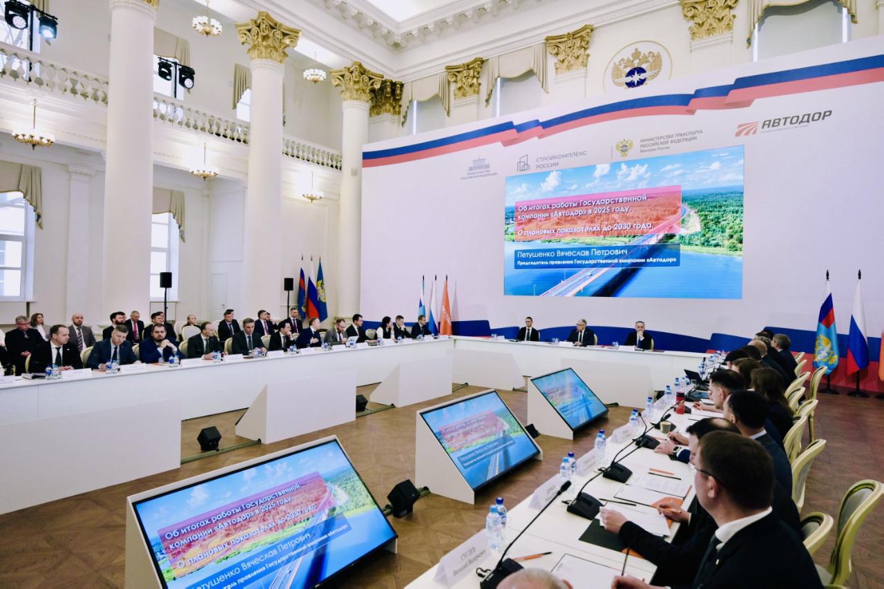 С приветственным словом выступил глава Госкомпании «Автодор» Вячеслав Петушенко. «По итогам прошлого года выполнены все задачи, поставленные перед Госкомпанией Президентом и Правительством Российской Федерации, а также достигнуты ключевые показатели эффективности. В полном объёме реализованы все намеченные инфраструктурные проекты:построено и реконструировано 326 км дорог, выполнены работы по ремонту и капремонту на 413 км. В воссоединенных регионах восстановлено порядка 800 км дорог и 11 мостов. Отмечу, что в 2025 году мы создали хороший задел на 2026 год и последующие периоды», — сказал Вячеслав Петушенко.