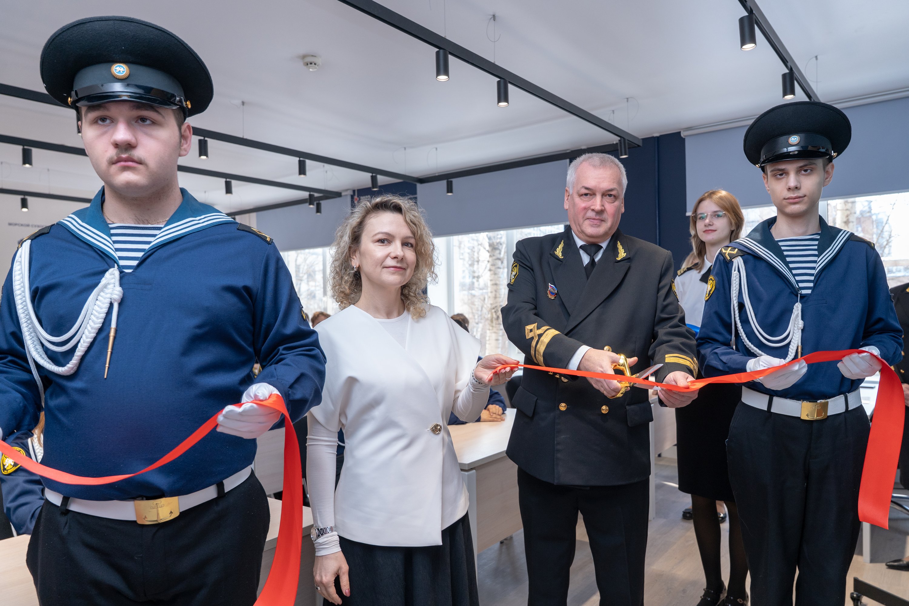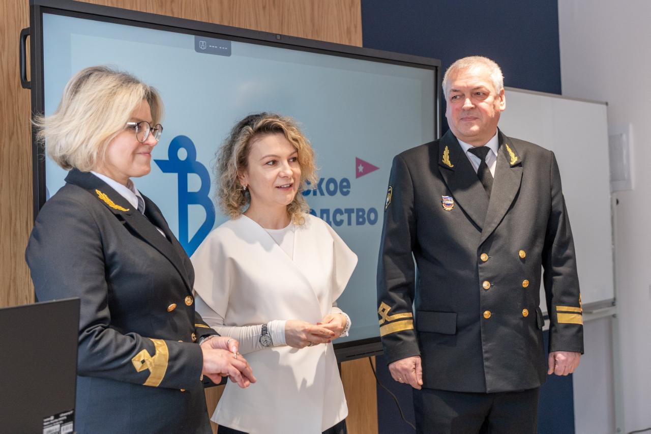 Российский университет транспорта совместно с судоходной компанией «Волжское пароходство» открыл в Академии водного транспорта новую брендированную аудиторию. На мероприятии присутствовали Директор АВТ РУТ Андрей Гузенко, директор по работе с персоналом Волжского пароходства Анастасия Царская и курсанты Академии.