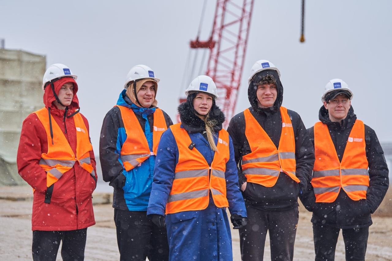 Практика прошла в Тверской области — на строительстве моста через реку Шошу. Это часть первой в России высокоскоростной магистрали. Студенты посмотрели, как организована стройка, и разобрали основные этапы работ:погружение свай, армирование ростверков и опор, бетонирование. В полевых условиях провели неразрушающий контроль качества бетона.