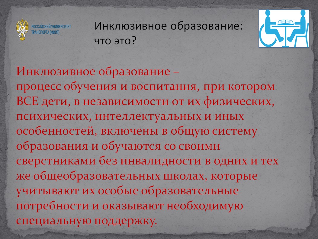 - Формирование условий для безбарьерного инклюзивного образования в Российском университете транспорта.