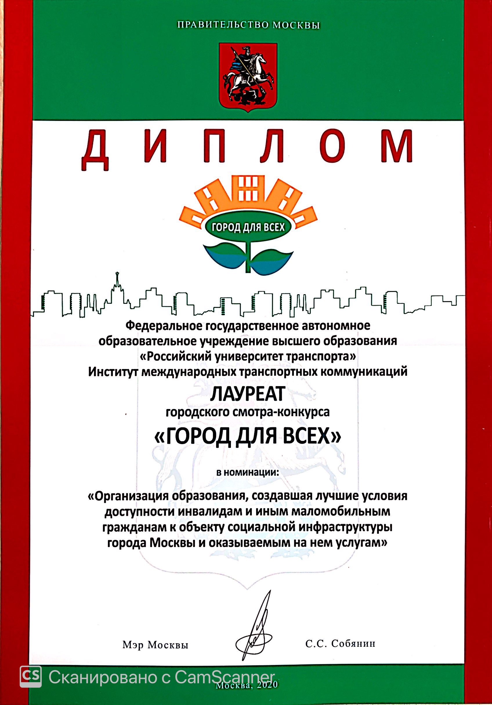 Ресурсный учебно-методический центр по обучению студентов с инвалидностью и ограниченными возможностями здоровья Российского университета транспорта 15 сентября 2020 года принял участие в городском смотре-конкурсе «Город для всех», который с 2009 года проводится в Москве.
