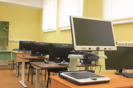 Это печатная машинка, специальная клавиатура, видео-увеличители, индукционная петля, радио-класс и много другое.
