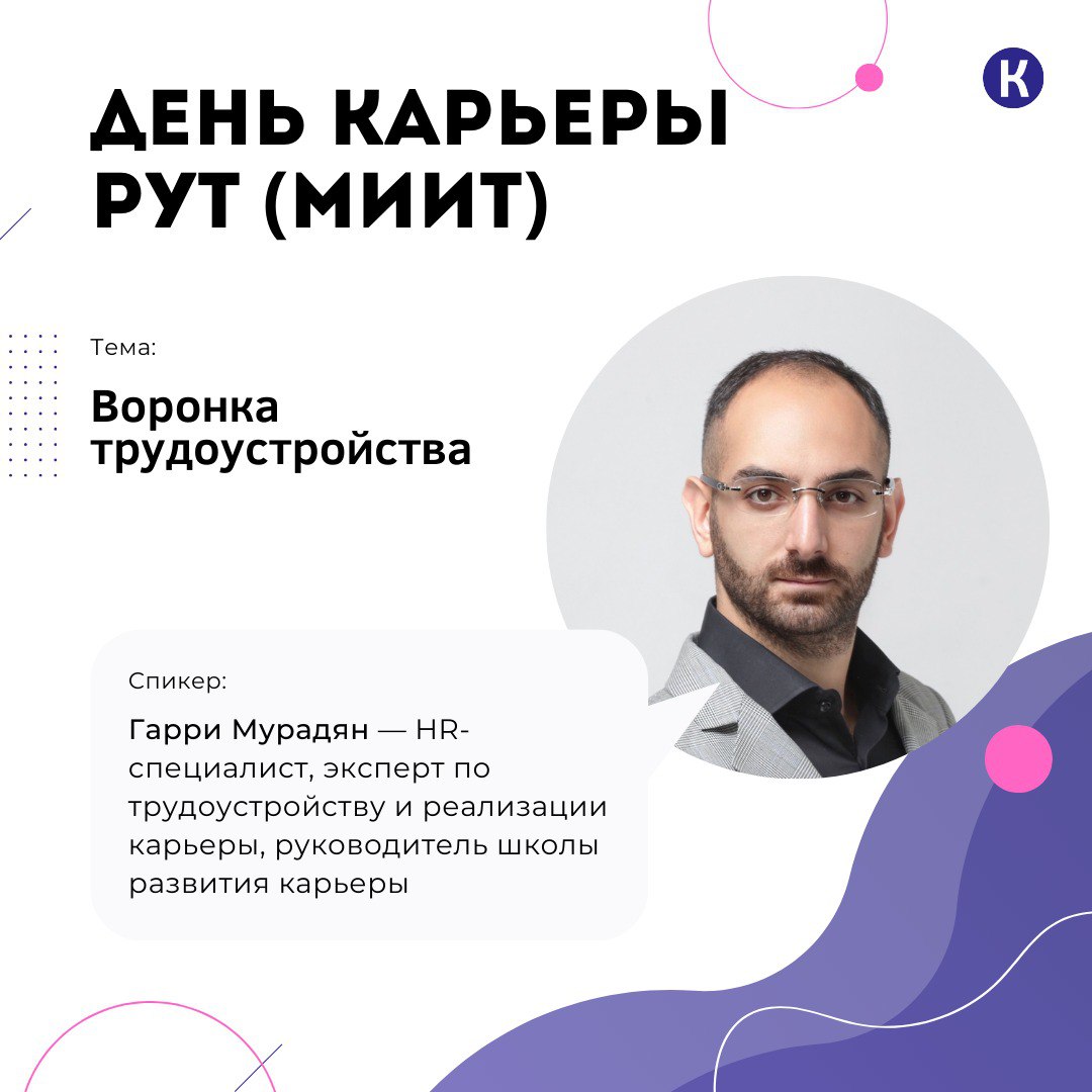 - Воронка трудоустройства — выступит Гарри Мурадян — HR-специалист, эксперт по трудоустройству и реализации карьеры, руководитель школы развития карьеры.