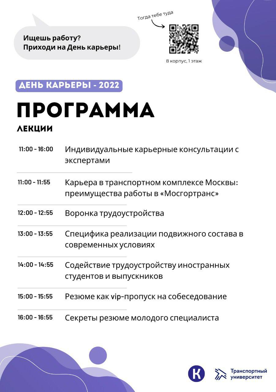 26 октября 2022 года состоится День карьеры Российского университета транспорта.