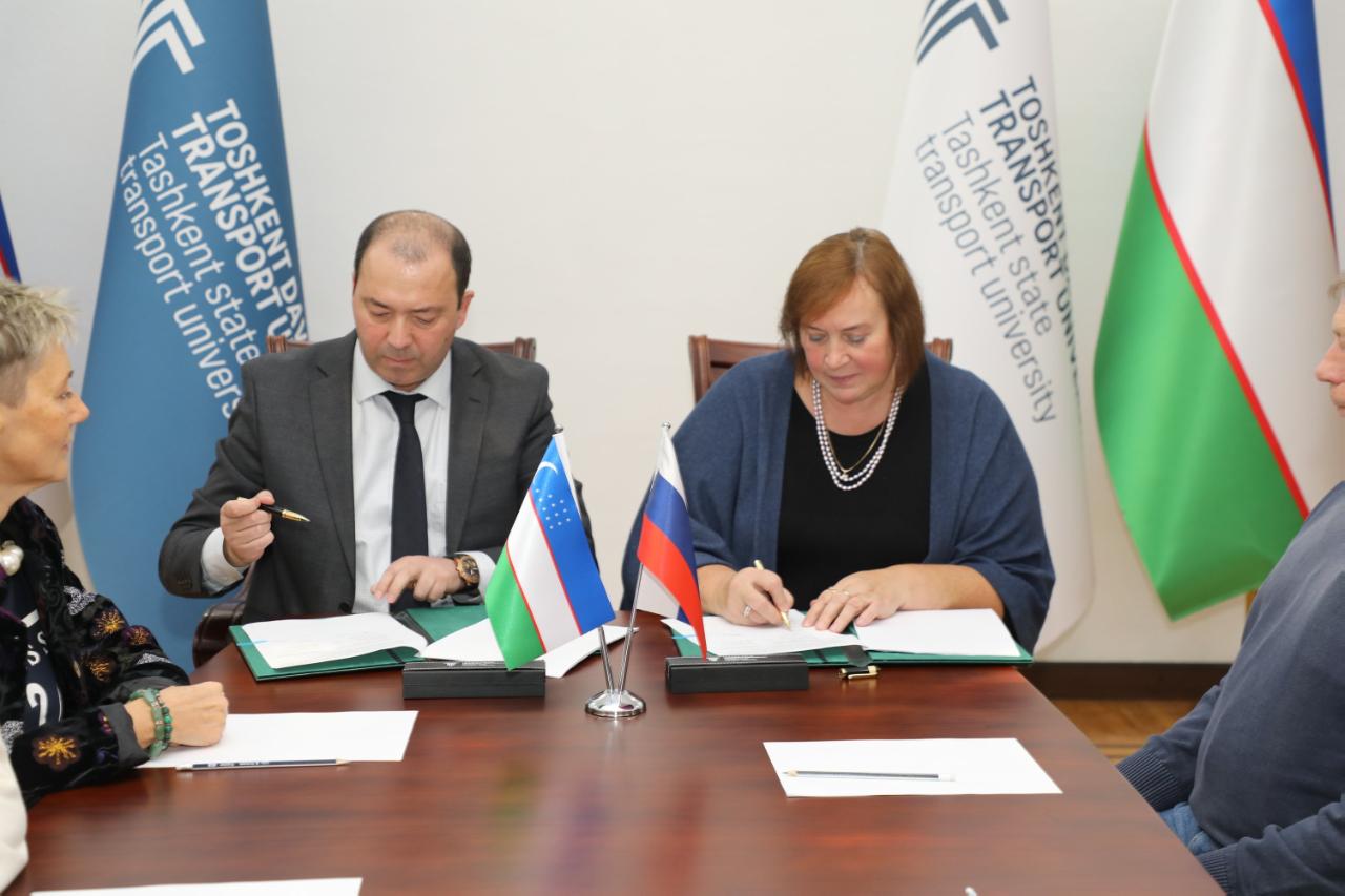 Российский университет транспорта и Ташкентский государственный транспортный университет (ТГТрУ) заключили соглашение о сотрудничестве, которое направлено на создание совместной образовательной программы «Международное транспортное право». Подписание состоялось в ходе Российско-узбекского образовательного семинара, который проходил 19-20 октября 2022 года в Ташкенте.