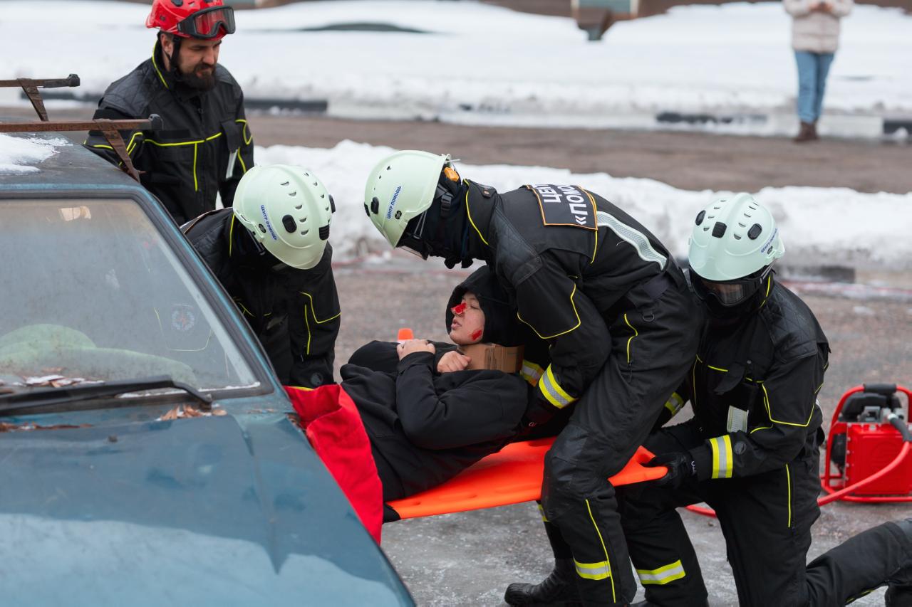 После торжественного построения прошли показательные учения добровольцев ВСКС и АНО «Центр "Помощь"». Студенты продемонстрировали свои навыки борьбы с возгоранием, оказание первой помощи пострадавшим в ДТП, транспортировку пострадавшего с высоты и многое другое.