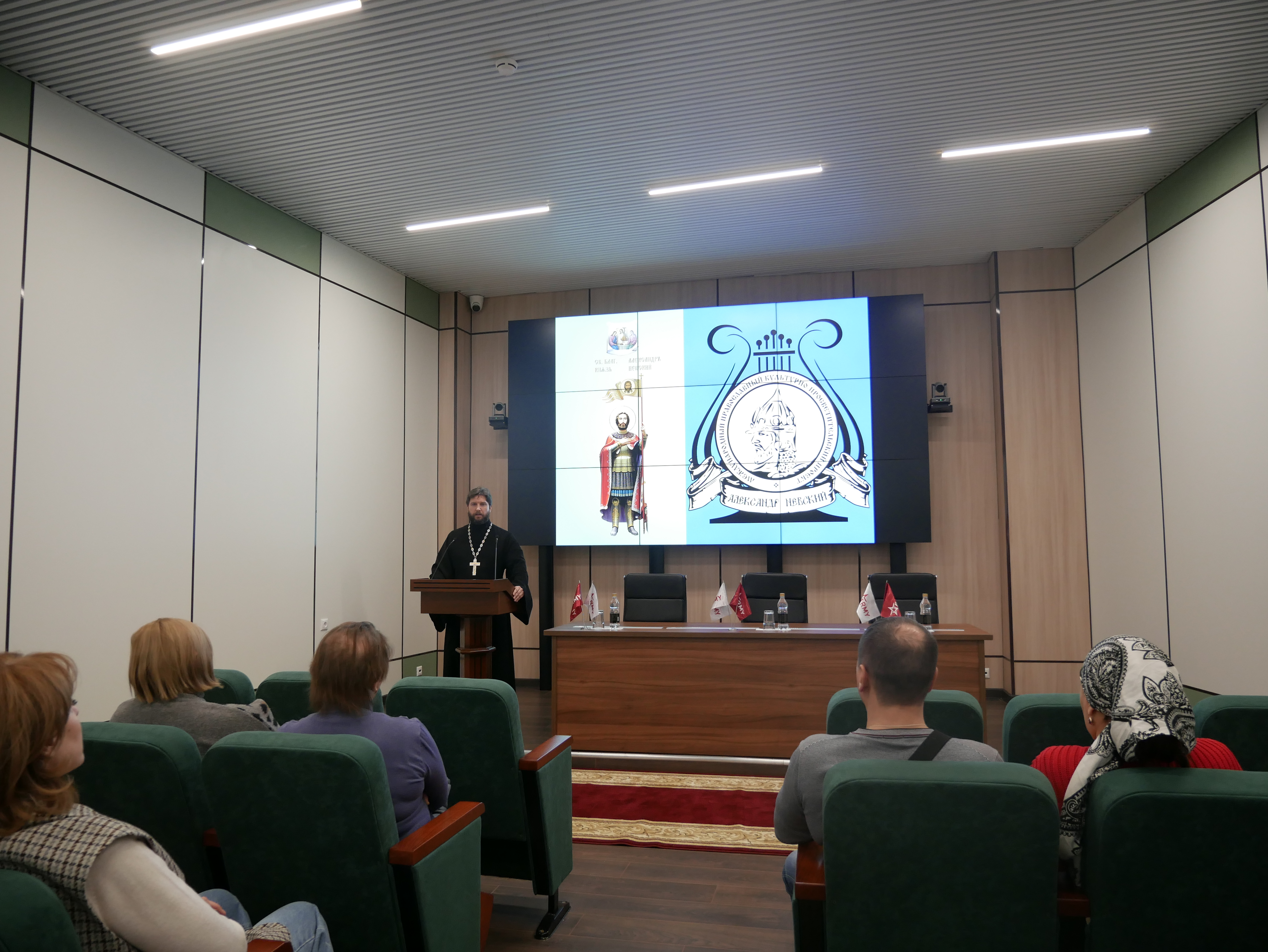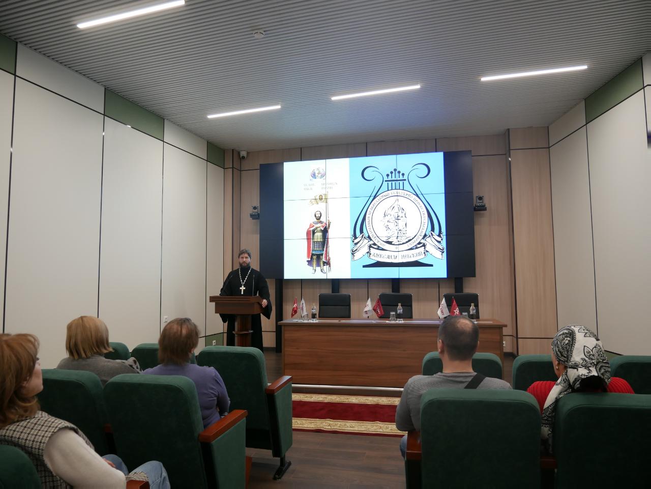 Для гостей была организована насыщенная программа. Состоялась лекция директора Свято-Сергиевского центра и начальника центра «Кафедра теологии» РУТ (МИИТ), священника Кирилла Киселева на тему: «Церковь и общество в эпоху так называемого постхристианства». Отец Кирилл рассказал присутствующим про глобальные вызовы современности и отношении к ним православных верующих людей, а также о просветительской и воспитательной деятельности подрастающего поколения, которая реализуется при Свято-Сергиевском центре с 2016 года.