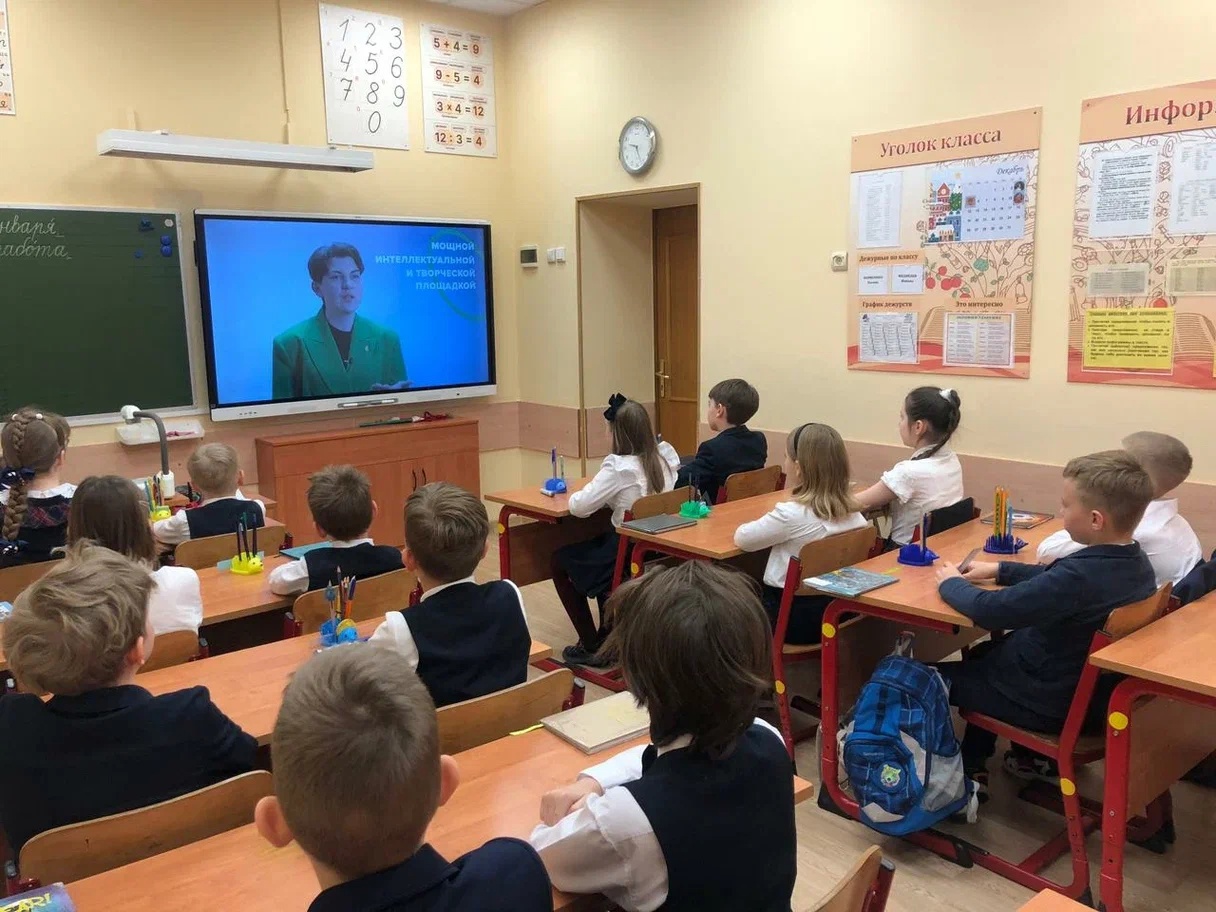 В видеопослании учеников 1–11 классов поприветствовал председатель правления Общероссийского общественно-государственного движения детей и молодежи Григорий Александрович Гуров.