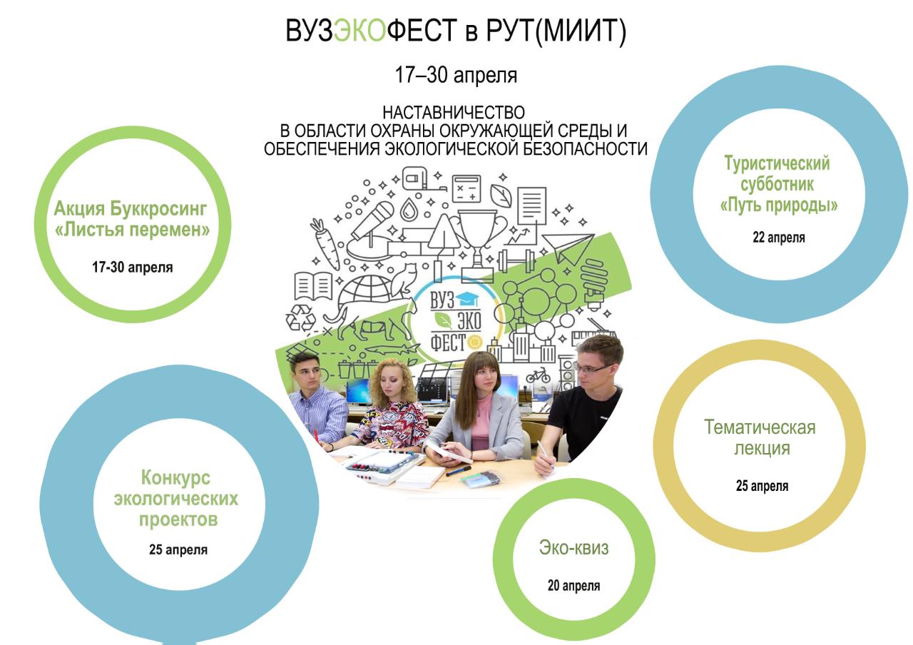 С 17 по 30 апреля в Российском университете транспорта состоится ежегодный экологический фестиваль «ВузЭкоФест – 2023». Тема этого года: «Наставничество в области охраны окружающей среды и обеспечения экологической безопасности».