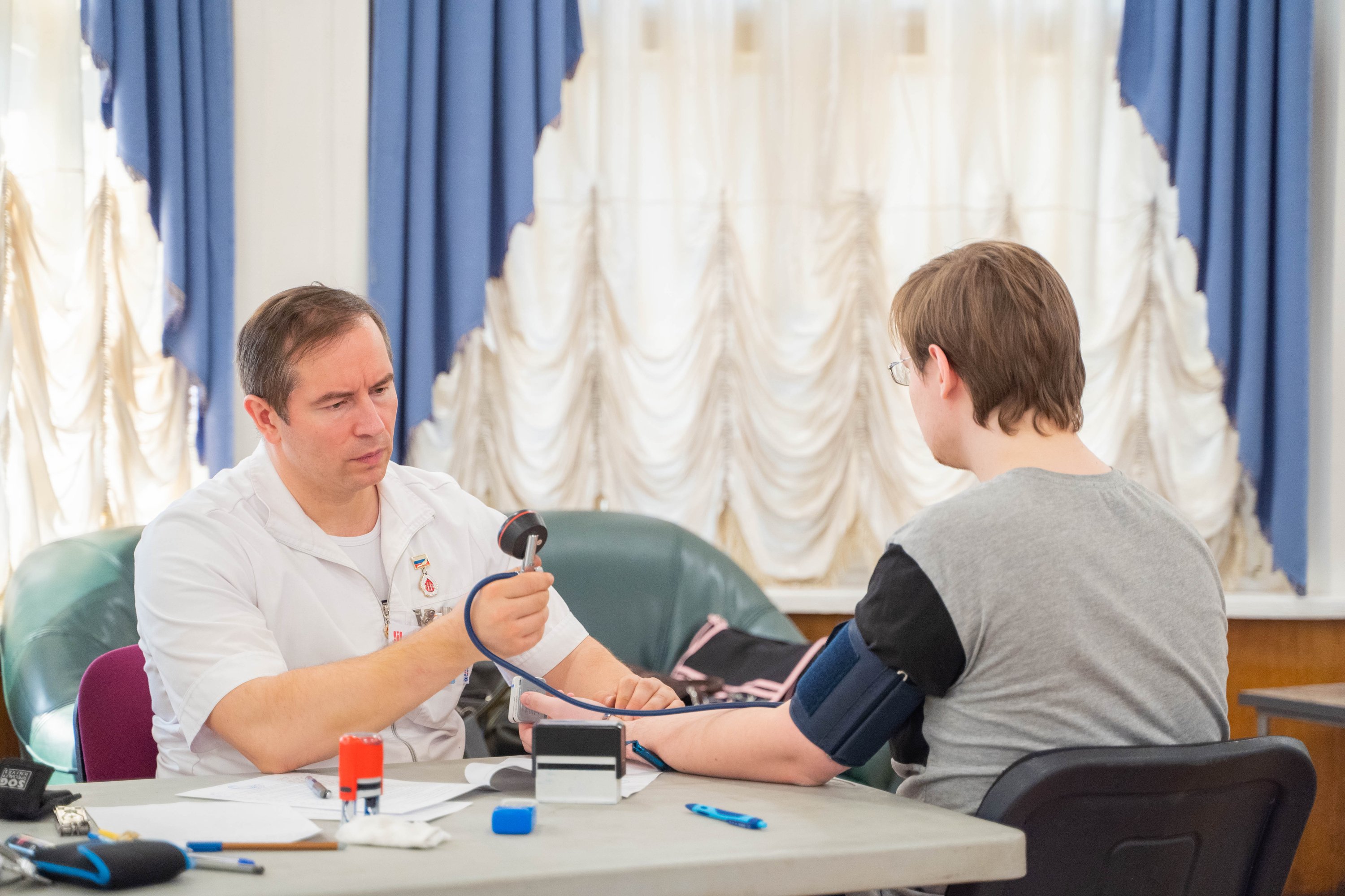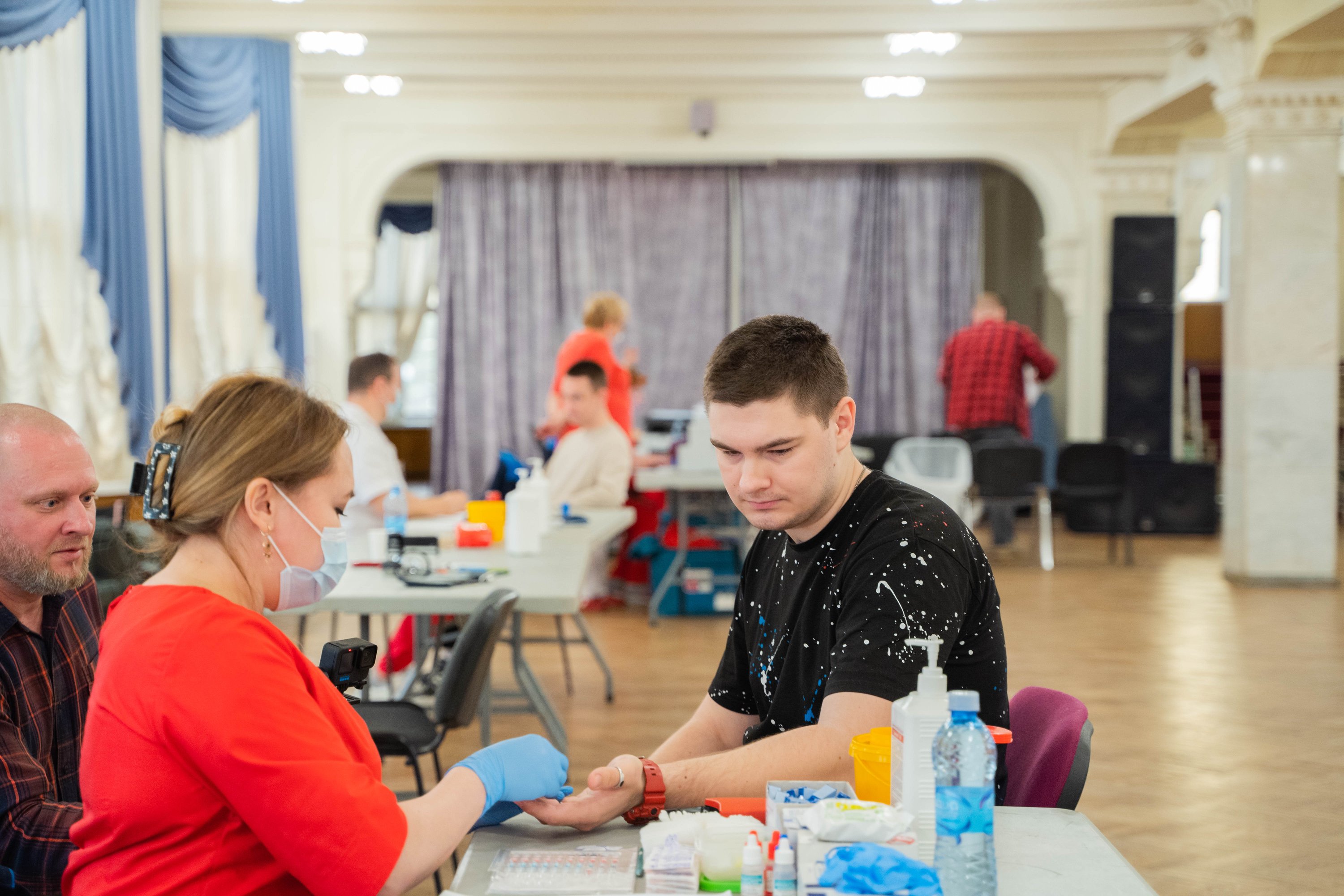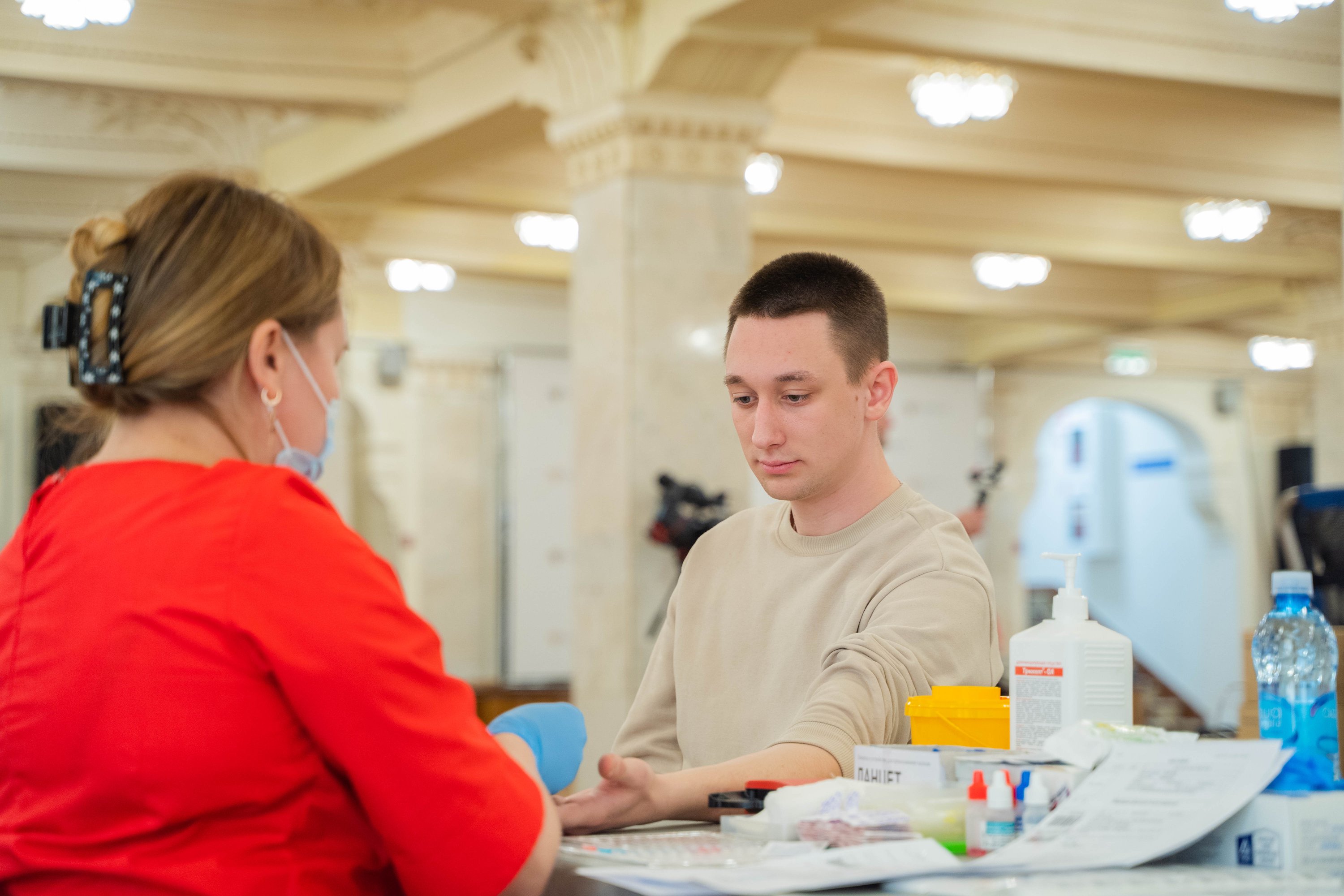После анкетирования, студенты и преподаватели сдавали анализы для установления группы крови и уровня гемоглобина. Каждый донор прошел обязательный комплексный осмотр у врача-терапевта и врача-трансфузиолога.