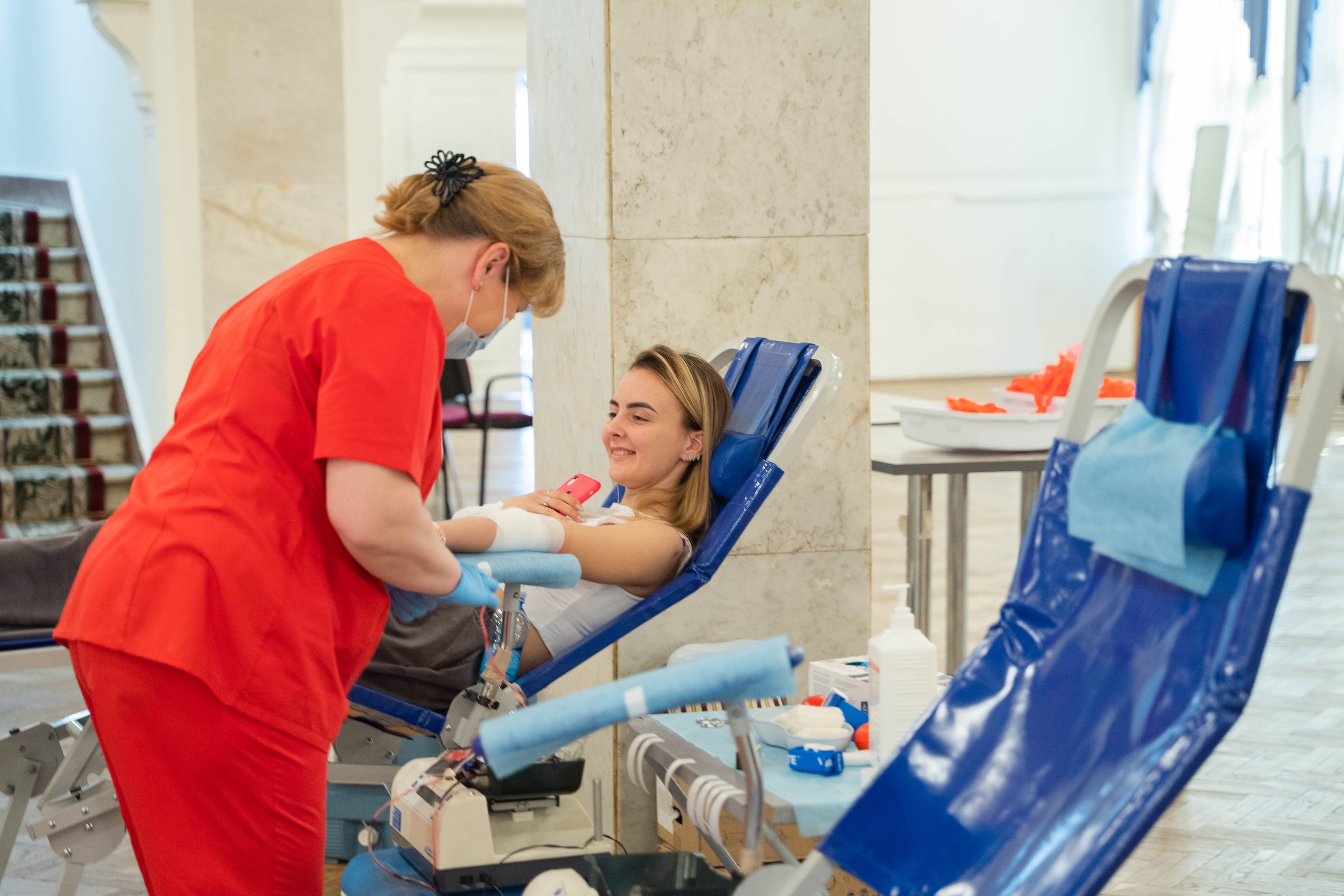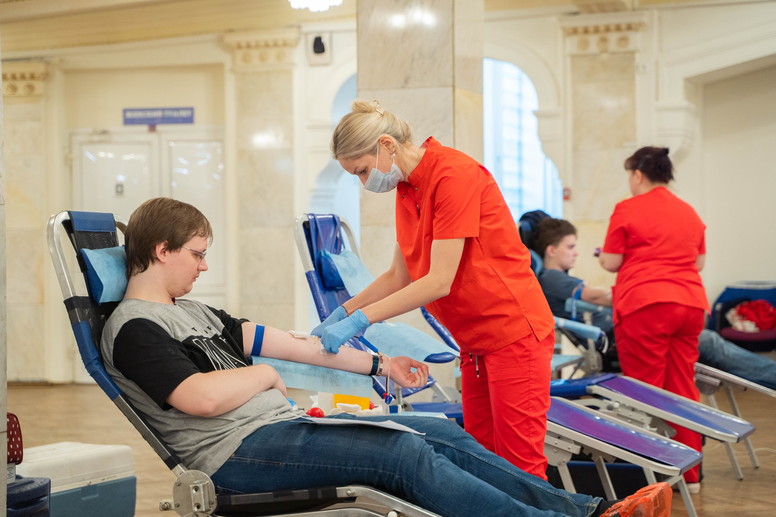 В этом году специальный передвижной мобильный комплект, оснащенный всем необходимым оборудованием, развернулся в стенах Дворца культуры РУТ (МИИТ). В учреждении разместили донорские кресла, специальную аппаратуру для забора, хранения и транспортировки крови и многое другое.