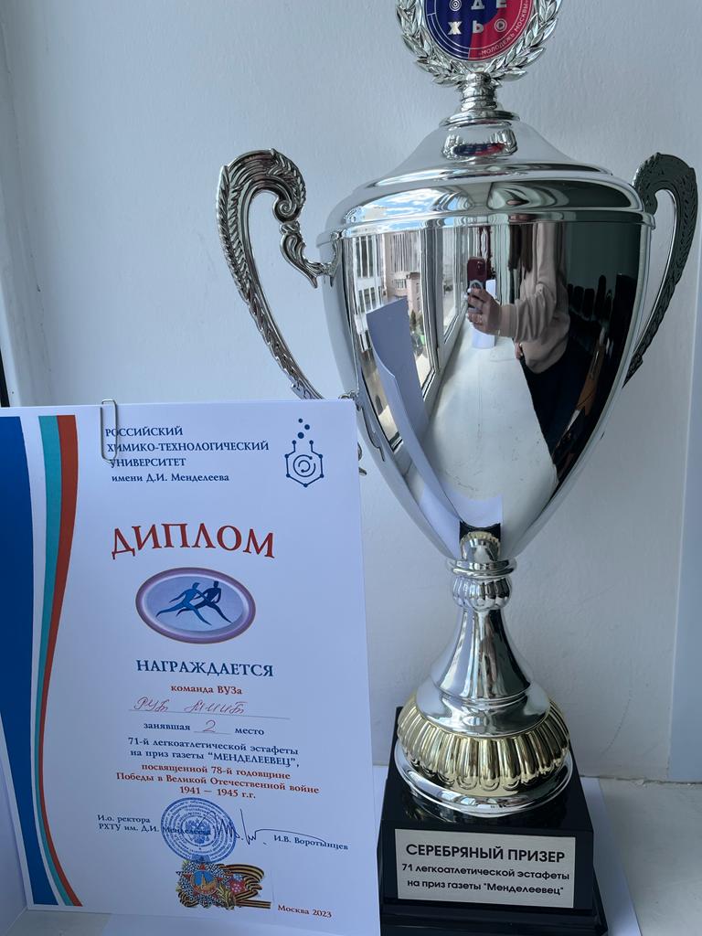 Сборная команда РУТ (МИИТ) впервые приняла участие в 71-й легкоатлетической эстафете на призы газеты «Менделеевец». Соревнования, посвященные 78-й годовщине Победы в Великой Отечественной войне, состоялись на базе РХТУ имени Д.И. Менделеева.