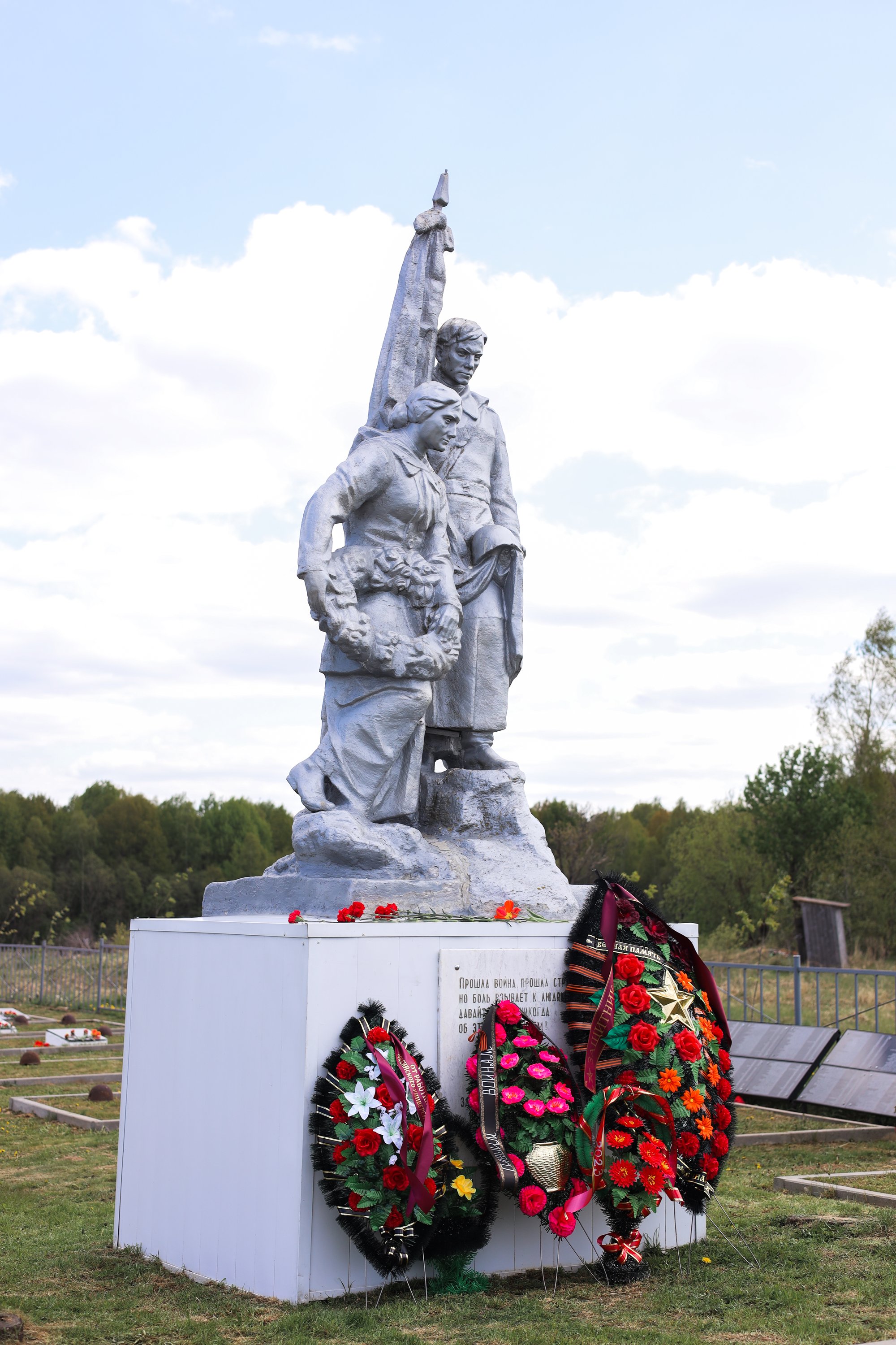 Делегация РУТ (МИИТ) провела памятный митинг на Ушаковом поле. Участники отряда «Ельня» возложили цветы к братским могилам, насчитывающим около 980 воинов Советской армии и партизан, погибших в 1941–1943 гг.