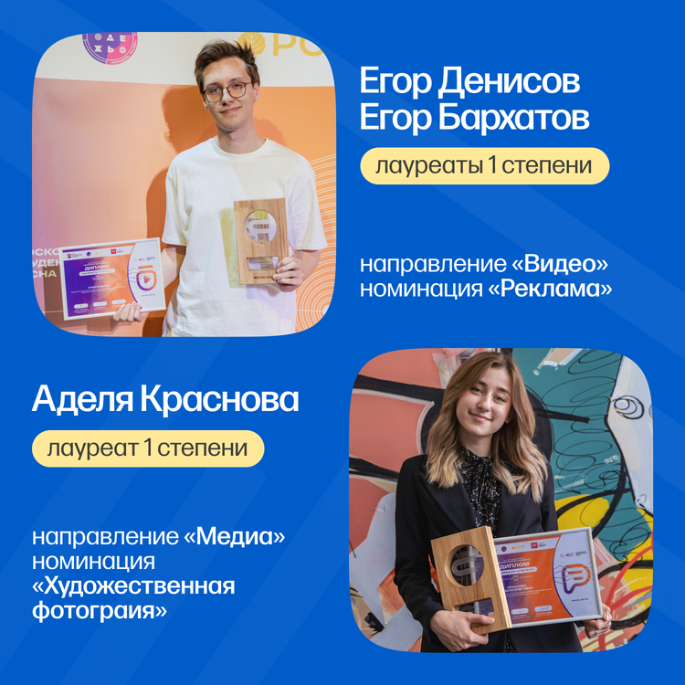 - Лауреаты 1 степени — Егор Денисов, Егор Бархатов | Направление «Видео», номинация «Реклама»