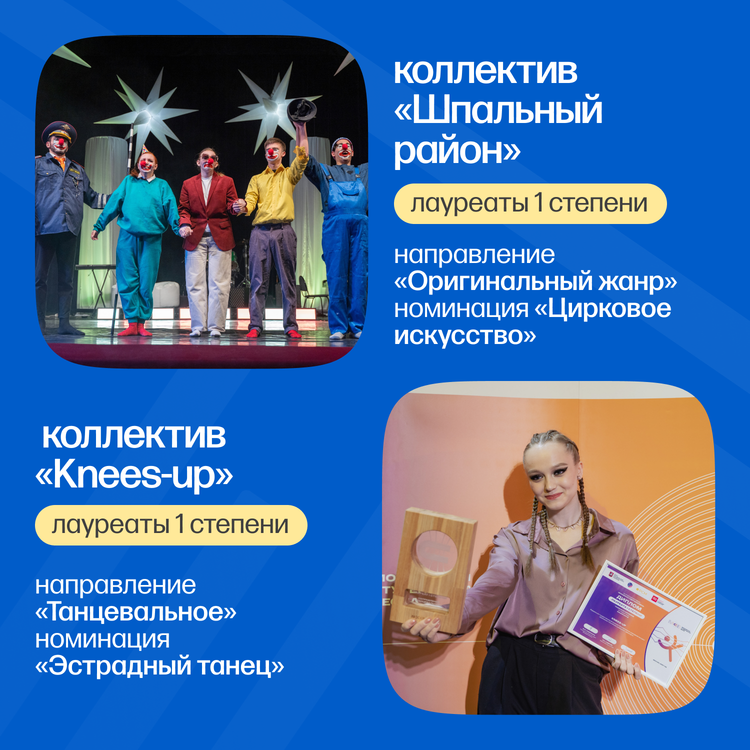 - Лауреаты 1 степени — коллектив «Шпальный район» | Направление «Оригинальный жанр», номинация «Цирковое искусство. Клоунада»