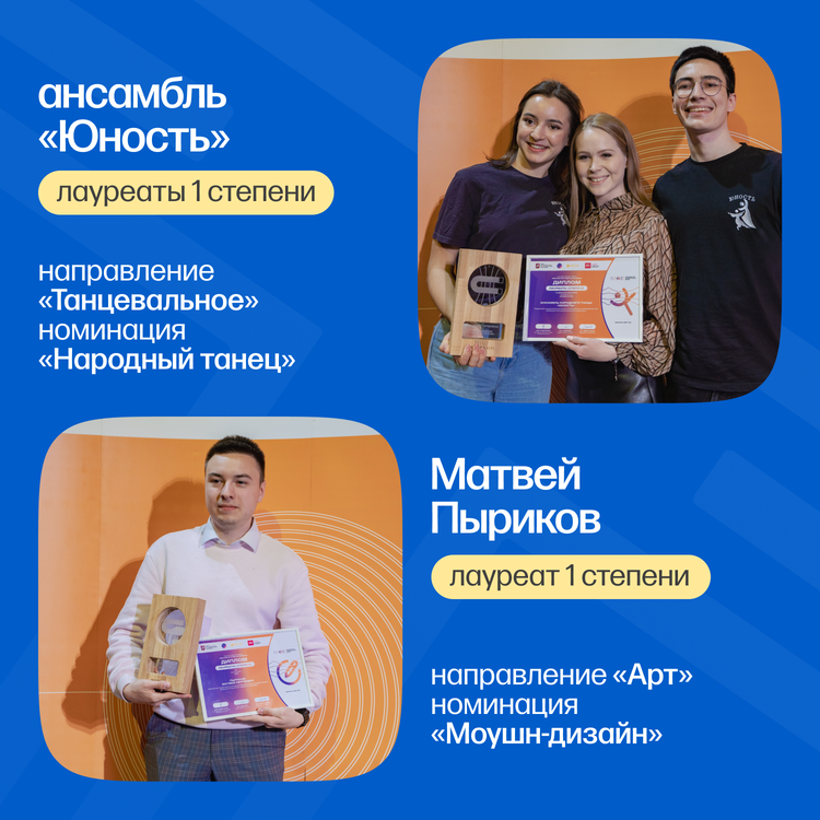 - Лауреаты 1 степени — ансамбль «Юность» | Направление «Танцевальное», номинация «Народный танец»