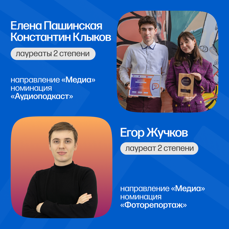 - Лауреаты 2 степени — Елена Пашинская, Константин Клыков | Направление «Медиа», номинация «Аудиоподкаст»