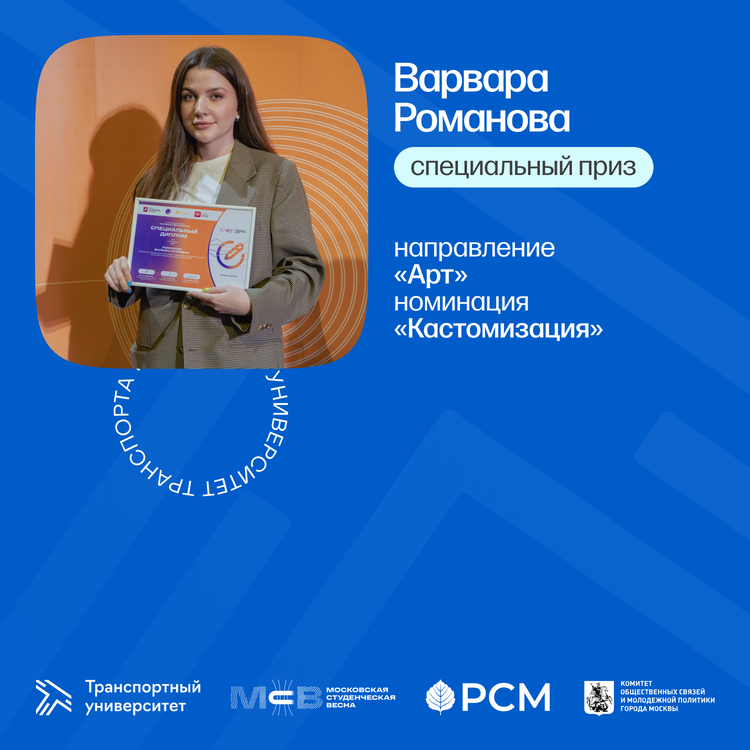 - Специальный приз — Варвара Романова | Направление «Арт», номинация «Кастомизация»