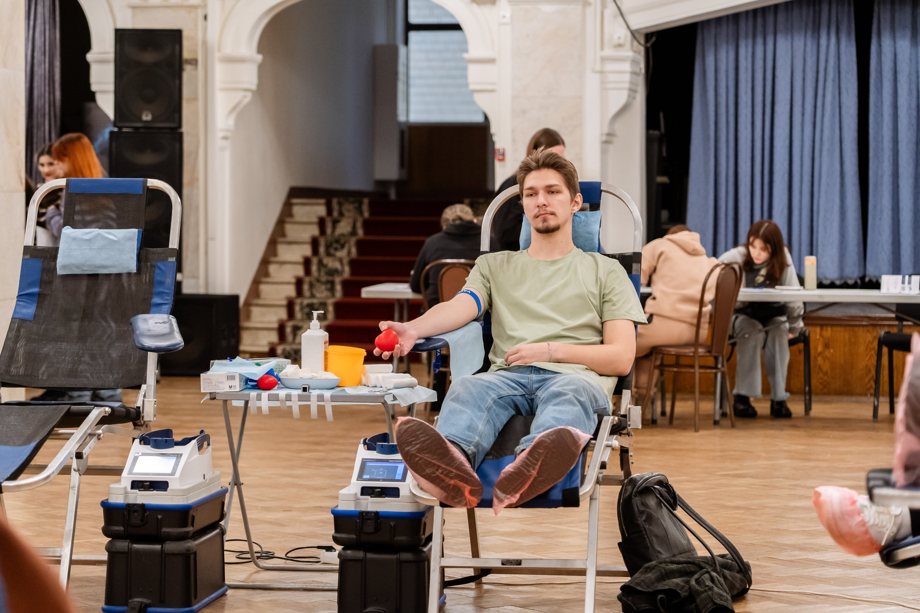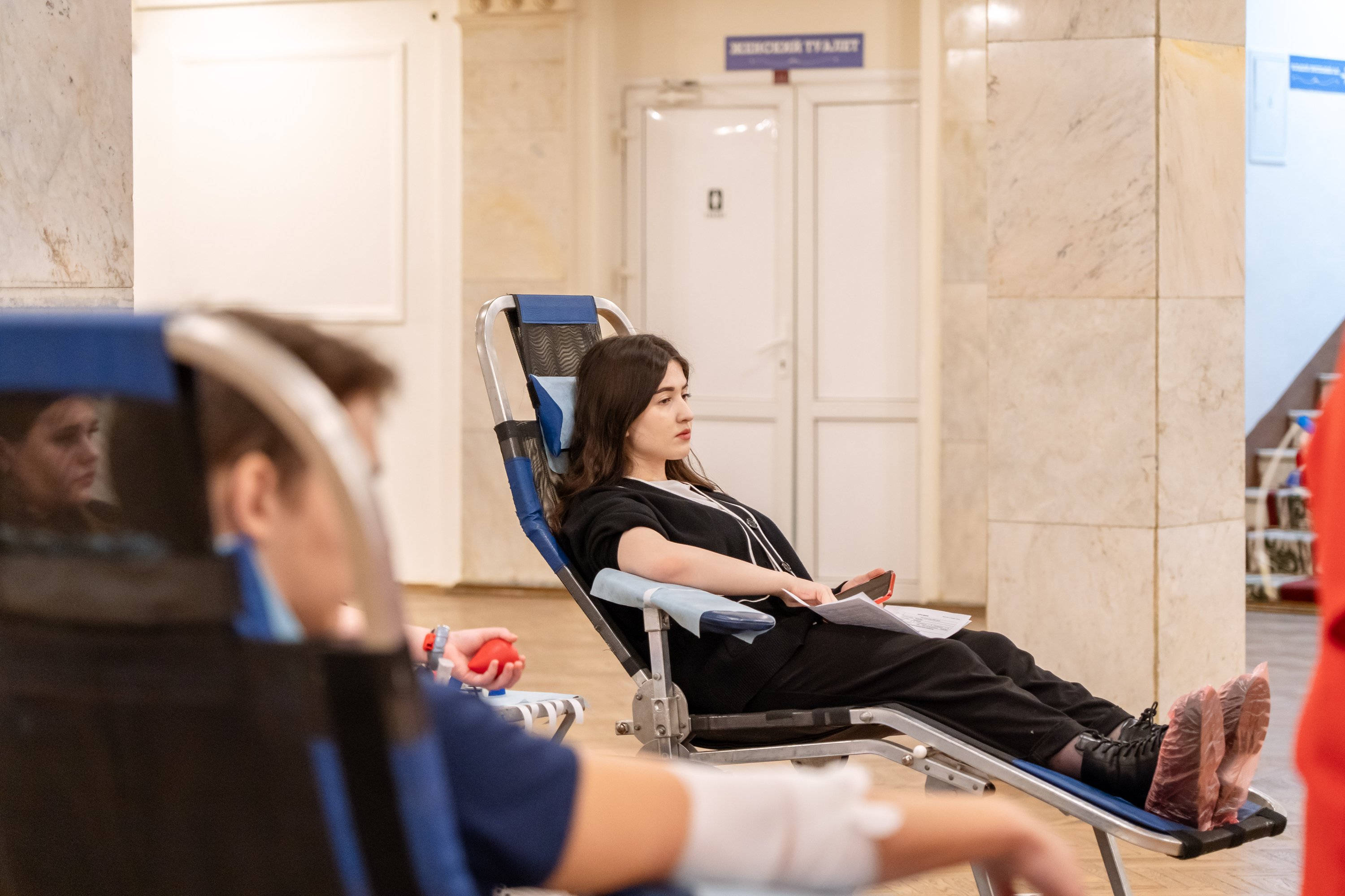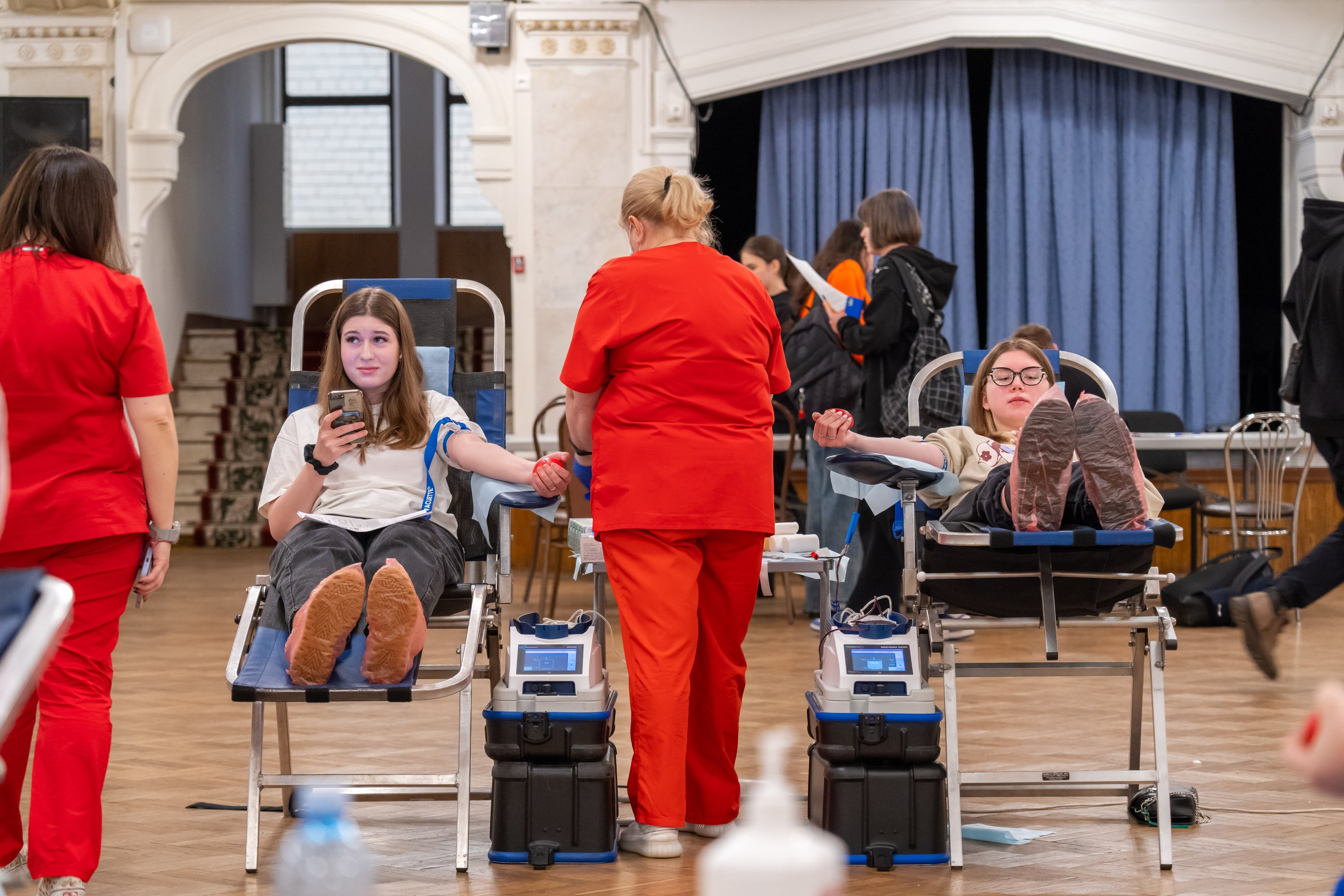 Специальный передвижной мобильный комплект, оснащенный всем необходимым оборудованием, развернулся в стенах Дворца культуры РУТ (МИИТ). В учреждении разместили донорские кресла, специальную аппаратуру для забора, хранения и транспортировки крови и многое другое.