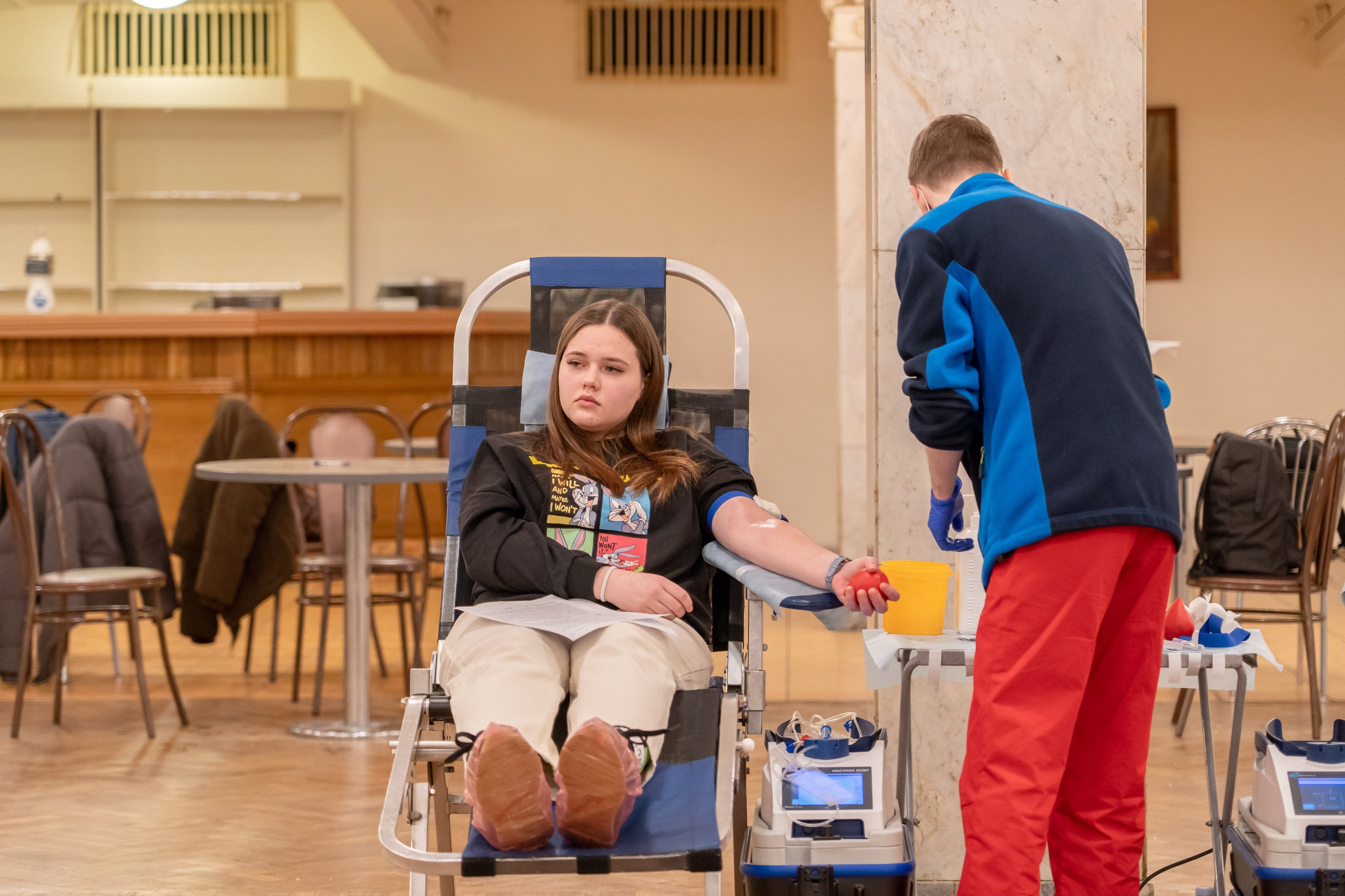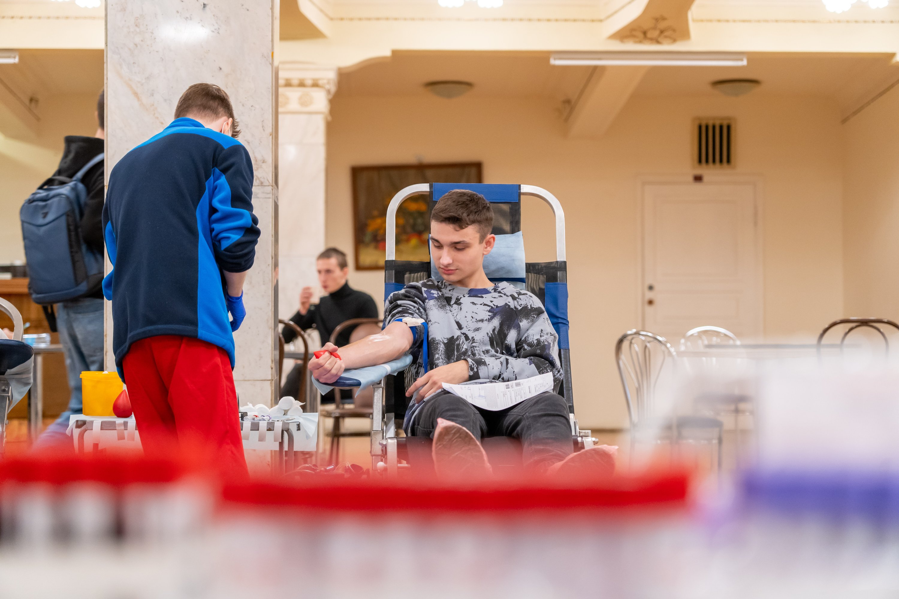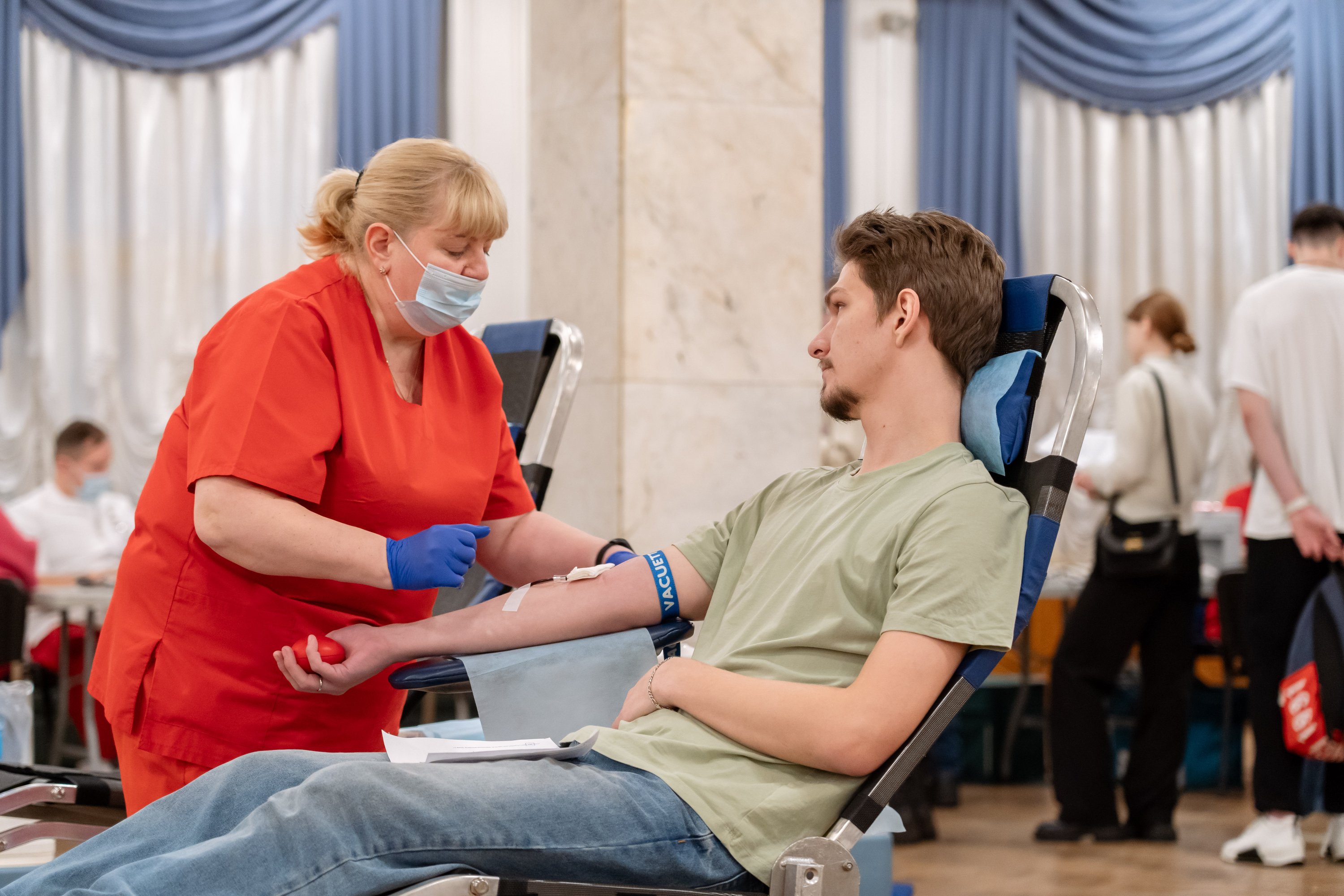 Специальный передвижной мобильный комплект, оснащенный всем необходимым оборудованием, развернулся в стенах Дворца культуры РУТ (МИИТ). В учреждении разместили донорские кресла, специальную аппаратуру для забора, хранения и транспортировки крови и многое другое.
