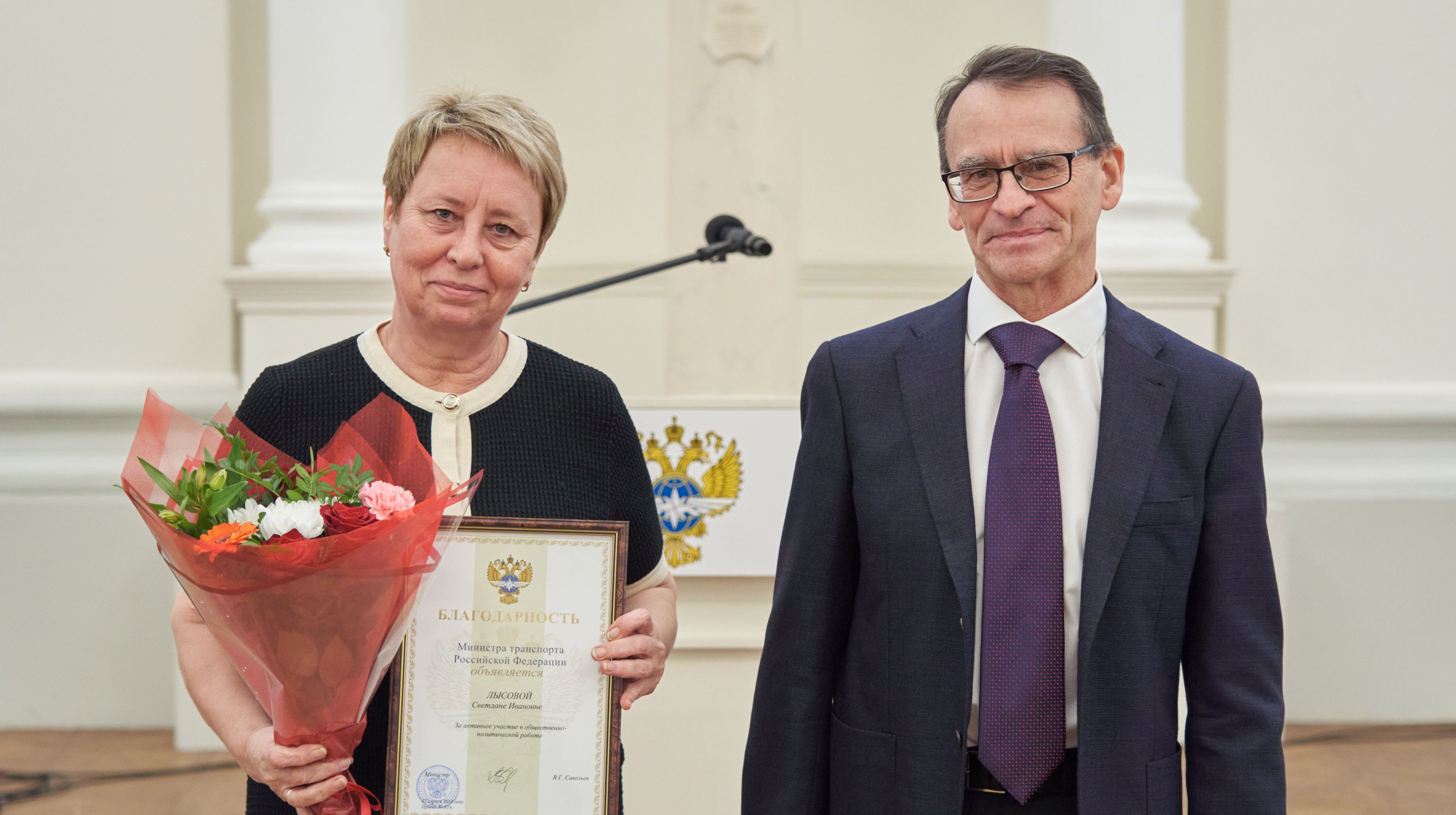 - За активное участие в общественно-политической работе благодарность Министра транспорта Российской Федерации объявляется: