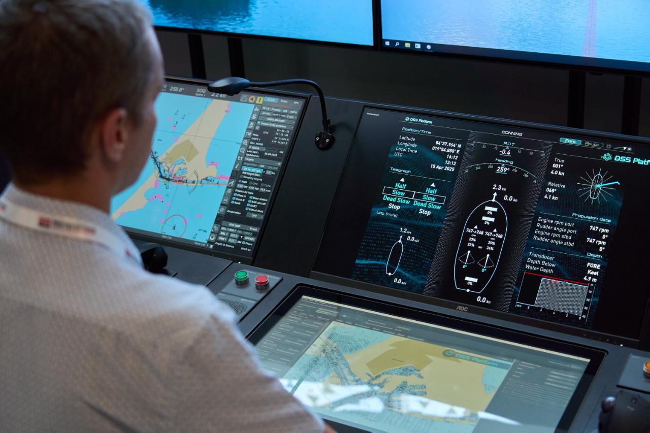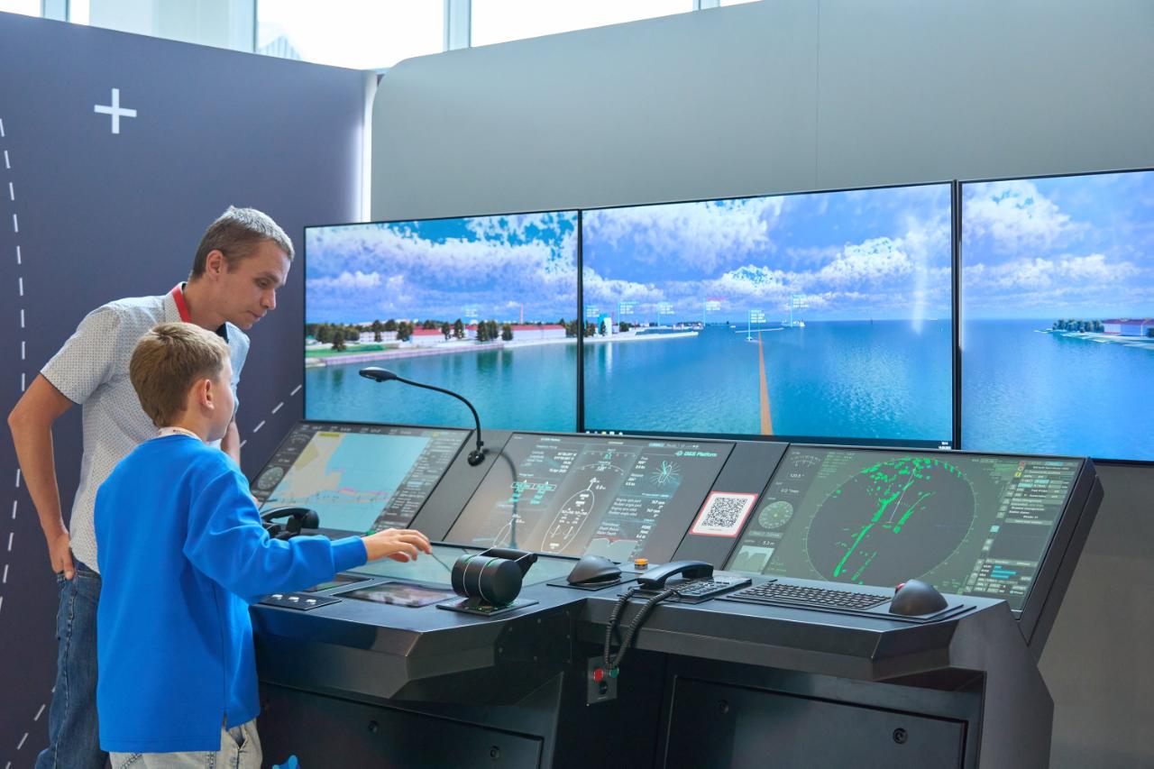 Вторая разработка, презентованная РУТ, — это тренажёр, предназначенный для отработки навыков по управлению и маневрированию автономными судами. С помощью VR он полностью имитирует судовое оборудование, включая приборы и устройства, а также моделирует погодные и навигационные условия самых популярных акваторий морских участков и портов в режиме реального времени. На таких тренажёрах готовятся и проходят сертификацию судоводители, экипаж судов, операторы системы управления движением, персонал центра дистанционного управления. На сегодняшний момент тренажёр не имеет зарубежных аналогов.