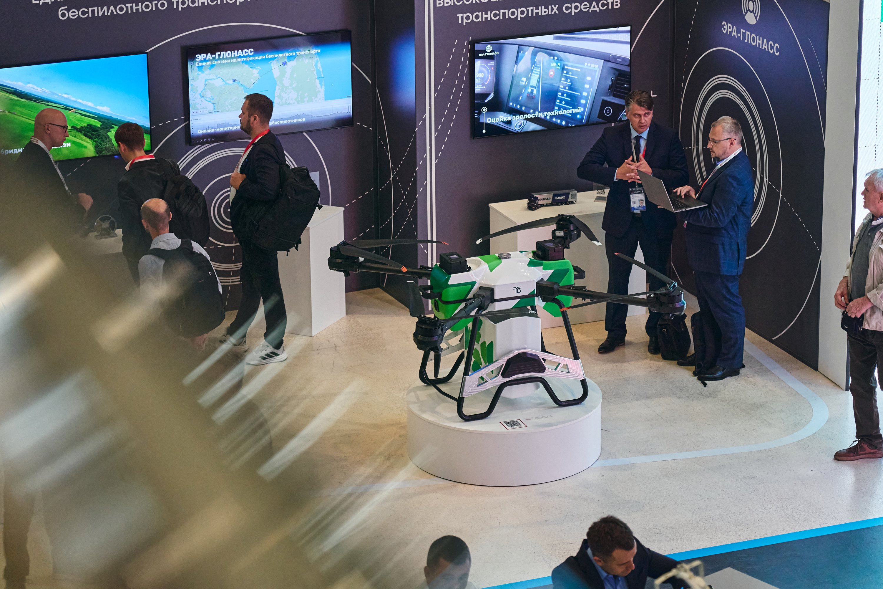 Стенд с транспортным наработками в сфере автономного управления судами и грузовыми авто, где расположились проекты Российского университета транспорта, посетили глава Министерства транспорта Андрей Никитин и заместитель руководителя администрации президента Российской Федерации Максим Орешкин, а также министр промышленности и торговли Антон Алиханов.