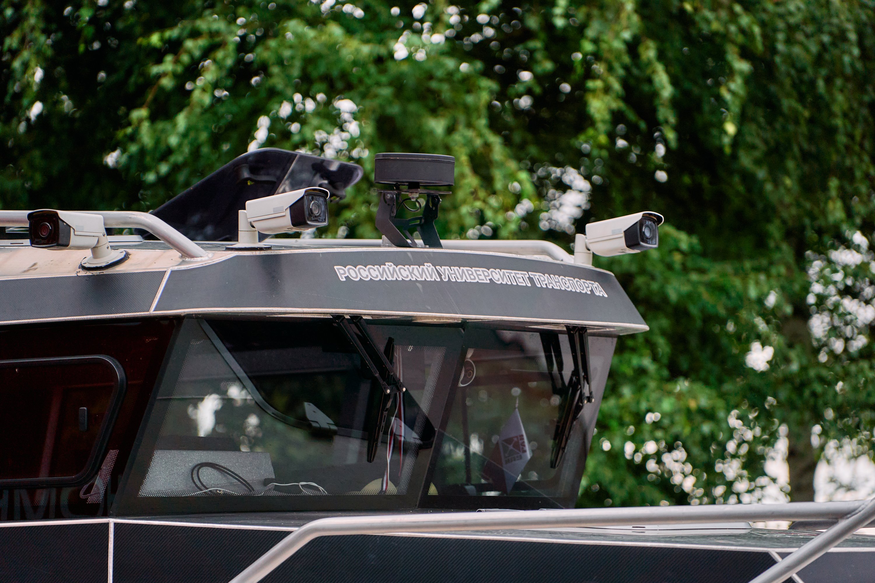 Маломерное автономное судно, представленное РУТ на форуме, оснащено системой дистанционного управления, которую вуз разработал вместе с Физтехом и ИПУ РАН. С помощью этой системы можно управлять судном с берега или перевести в автоматический режим, чтобы оно двигалось по заданным координатам. В этом году судно прошло испытания, совершив рейс по реке Дон. Участники испытаний проверяли работу дистанционного управления, провели экологический мониторинг нижнего течения реки и взяли пробы воды. Помимо этого, РУТ разработал геоинформационную систему «Цифровой двойник акватории» и систему рекомендаций по информационной безопасности автономного судоходства. Также с этого года разработку дополнили речным автономным дронопортом:системой автоматического взлёта и посадки БПЛА с борта автономного судна.