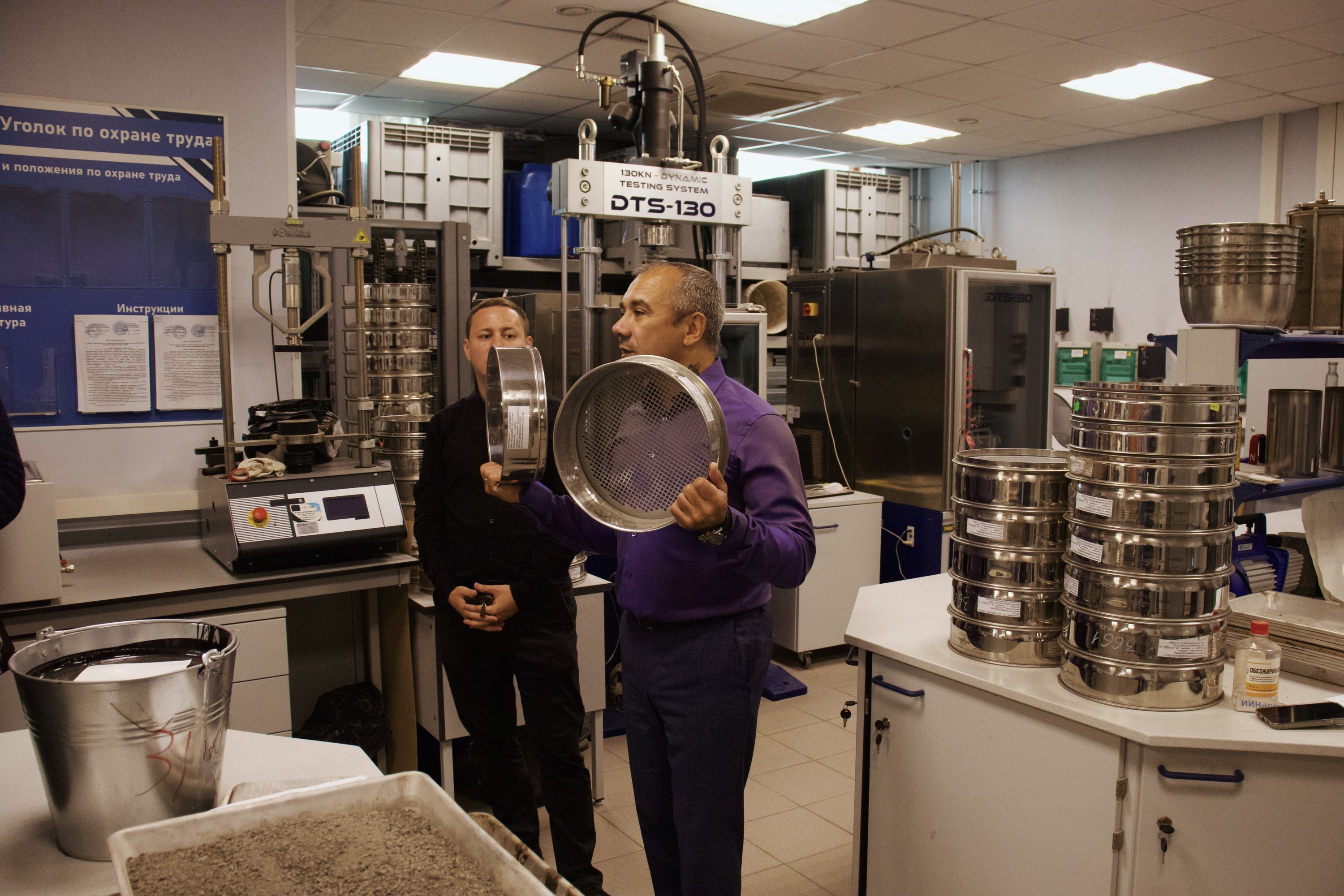 После лекций педагоги посетили испытательно-исследовательскую лабораторию РОСДОРНИИ, где им показали оборудование для определения свойств дорожно-строительных материалов.