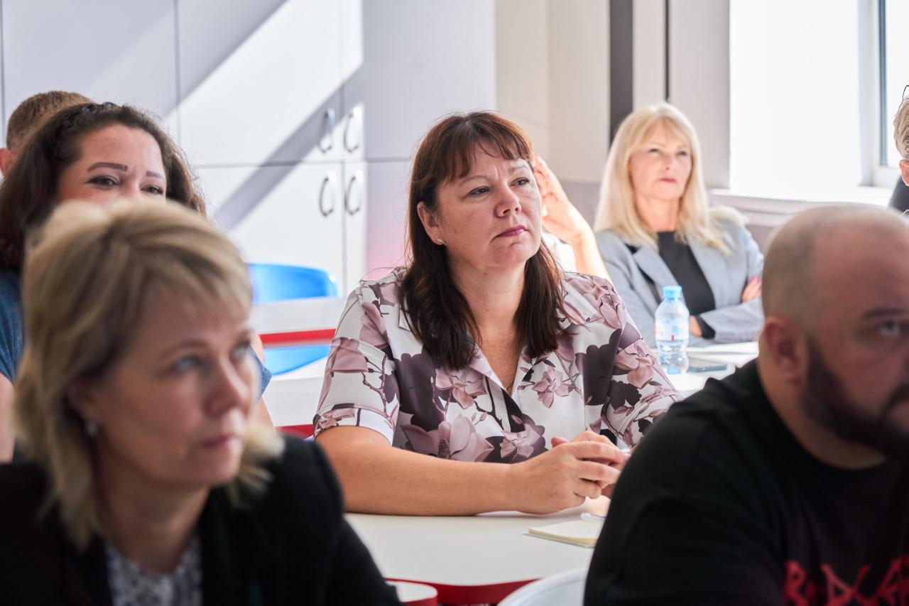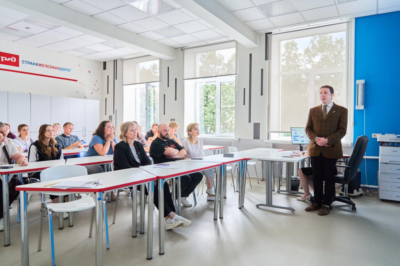 В последний день обучения педагоги посетили гимназию РУТ, где директор Оксана Мирушина рассказала участникам о том, как взаимодействуют гимназия и вуз в рамках преемственного профильного и предпрофессионального образования, а также о работе с социальными партнёрами. Программа завершилась экскурсией по Московскому колледжу транспорта РУТ.