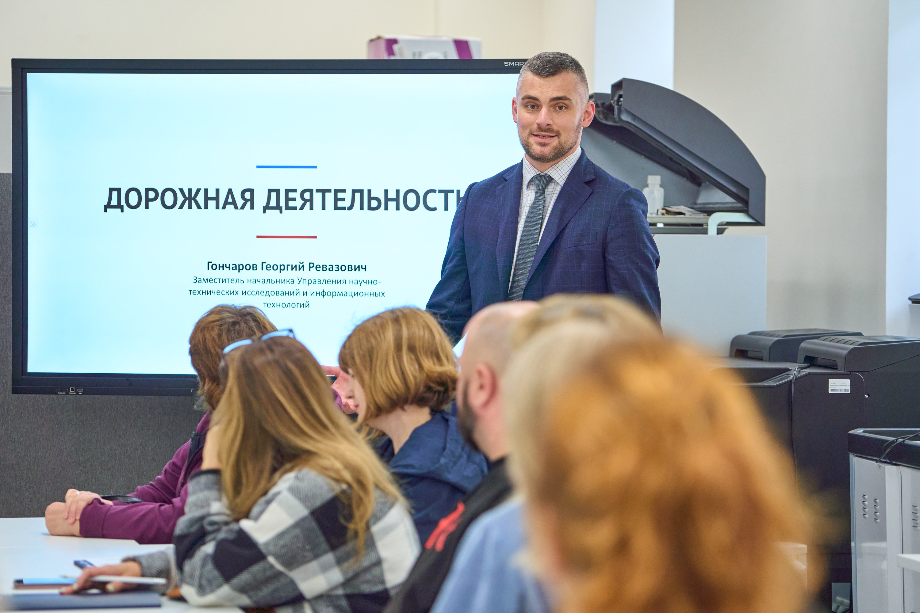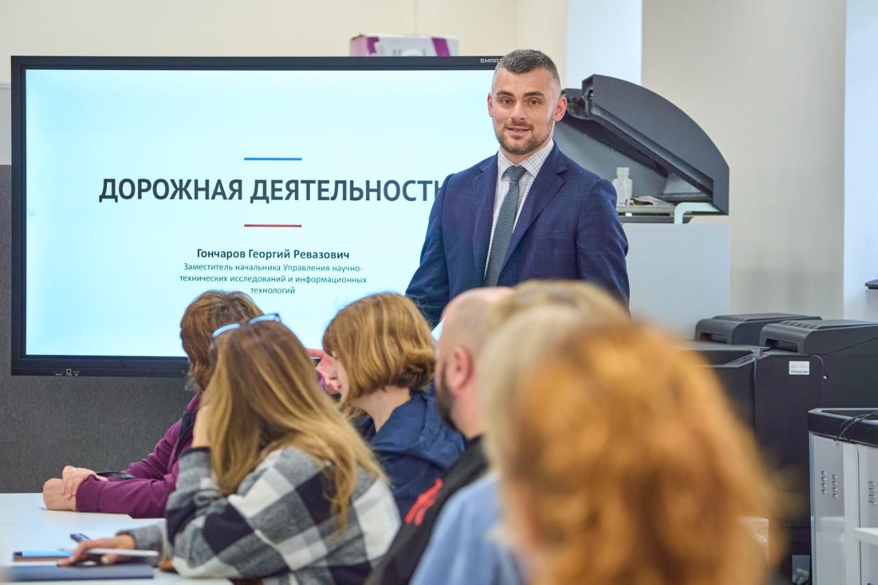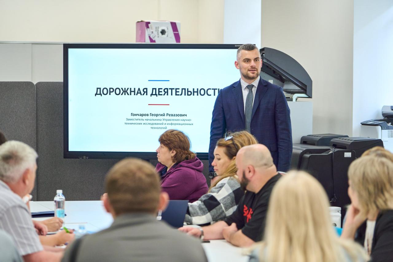 Педагогам рассказали об устройстве дорожного хозяйства России, как строятся автомобильные дороги, из каких материалов они состоят и какие категории дорог существуют. Владимир Мартинсон раскрыл содержание профессий проектировщика, геодезиста, инженера производственно-технического отдела, специалиста испытательно-исследовательской лаборатории и других дорожных специальностей. Александр Конорев рассказал об ускоренных методах испытаний дорожных одежд, а Ирина Ковтун поделилась особенностями ценообразования в отрасли. Антон Журавлёв рассказал об информационной системе контроля за формированием и использованием средств дорожных фондов, её возможностях и практической пользе для граждан.