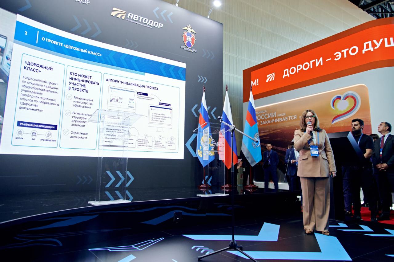 На второй день XII Международной специализированной выставки «Дорога 2025» Российский университет транспорта принял участие сразу в нескольких мероприятиях. АДХ РУТ представила публике масштабный проект «Дорожный класс», который даёт возможность школам по все стране открывать профориентационные классы по направлению «Дорожная деятельность». Этот проект — результат большого труда отраслевого сообщества и Академии дорожного хозяйства РУТ.