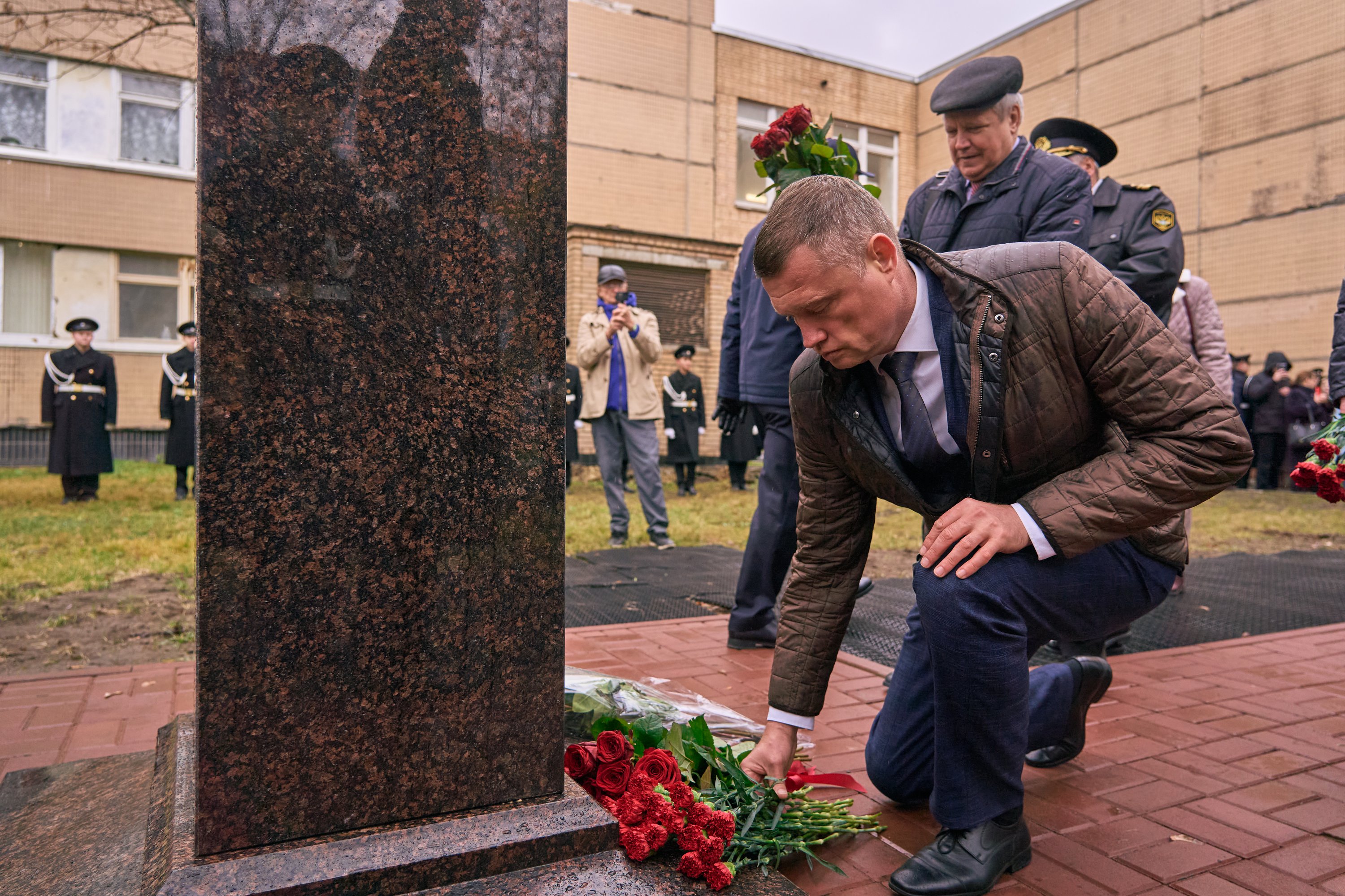 Под барабанную дробь курсантка колледжа, обладательница значка «Юный моряк» и выпускница клуба юных моряков имени Петра Великого Екатерина Амонская и курсант Академии, набравший наивысший балл при поступлении, Иван Стемплевский сняли покрывало с памятника. После этого гости возложили цветы в память о выдающемся руководителе, человеке, который вдохновлял окружающих своим трудом и преданностью делу и внёс огромный вклад в развитие речного флота.
