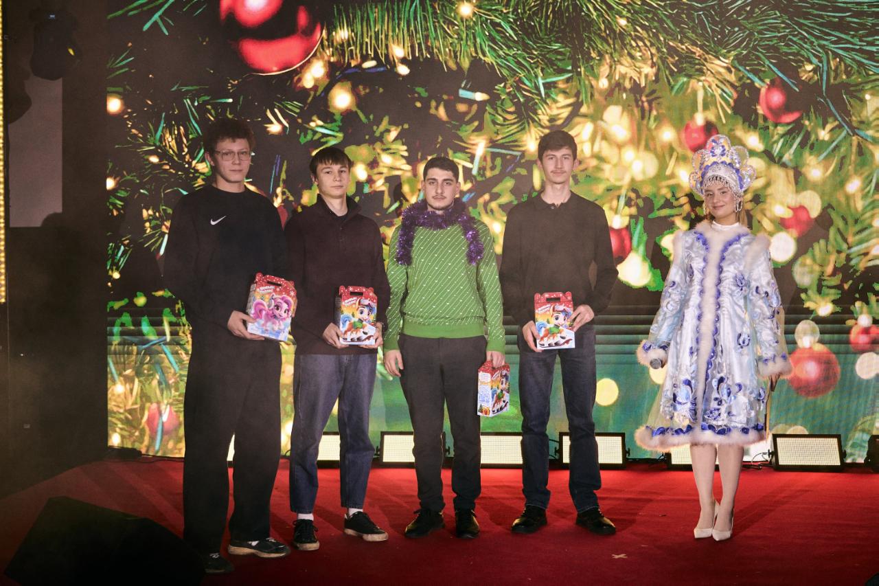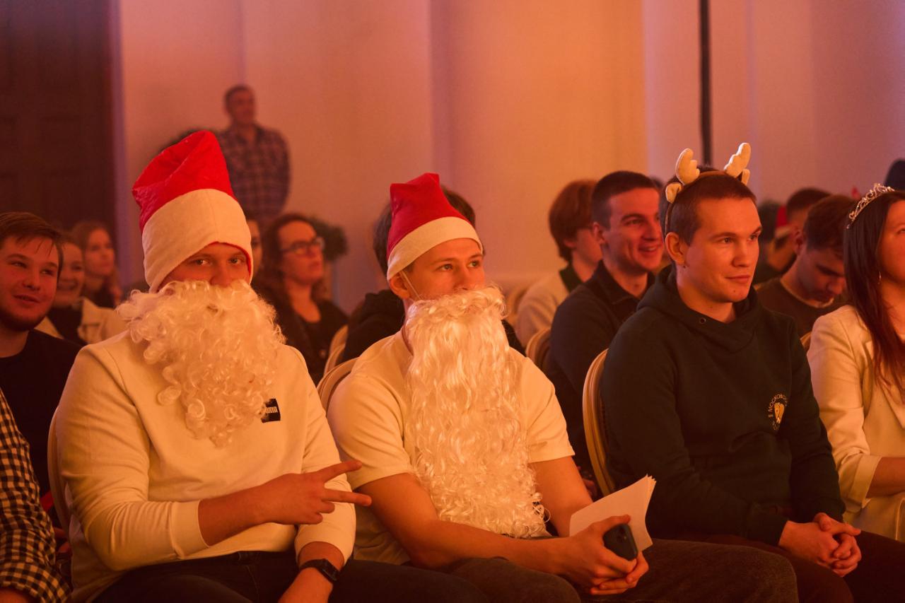 На сцене разыгралось настоящее представление: Лиса (Варвара Романова), Волк (Михаил Палинов) и Снегурочка (Милена Сапегина) искали Деда Мороза (Владислав Павленко), попутно знакомя аудиторию с разработками студентов. Команды представили проекты: