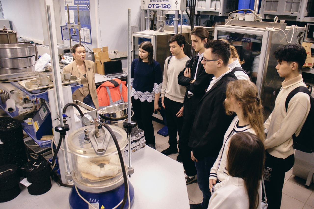 В преддверии Дня российской науки студенты РУТ, обучающиеся по профилю «Автомобильные дороги», вместе с проректором Татьяной Марканич и директором Академии дорожного хозяйства Алексеем Пеньковым посетили испытательно-исследовательскую лабораторию РОСДОРНИИ.