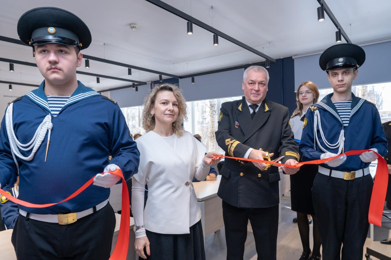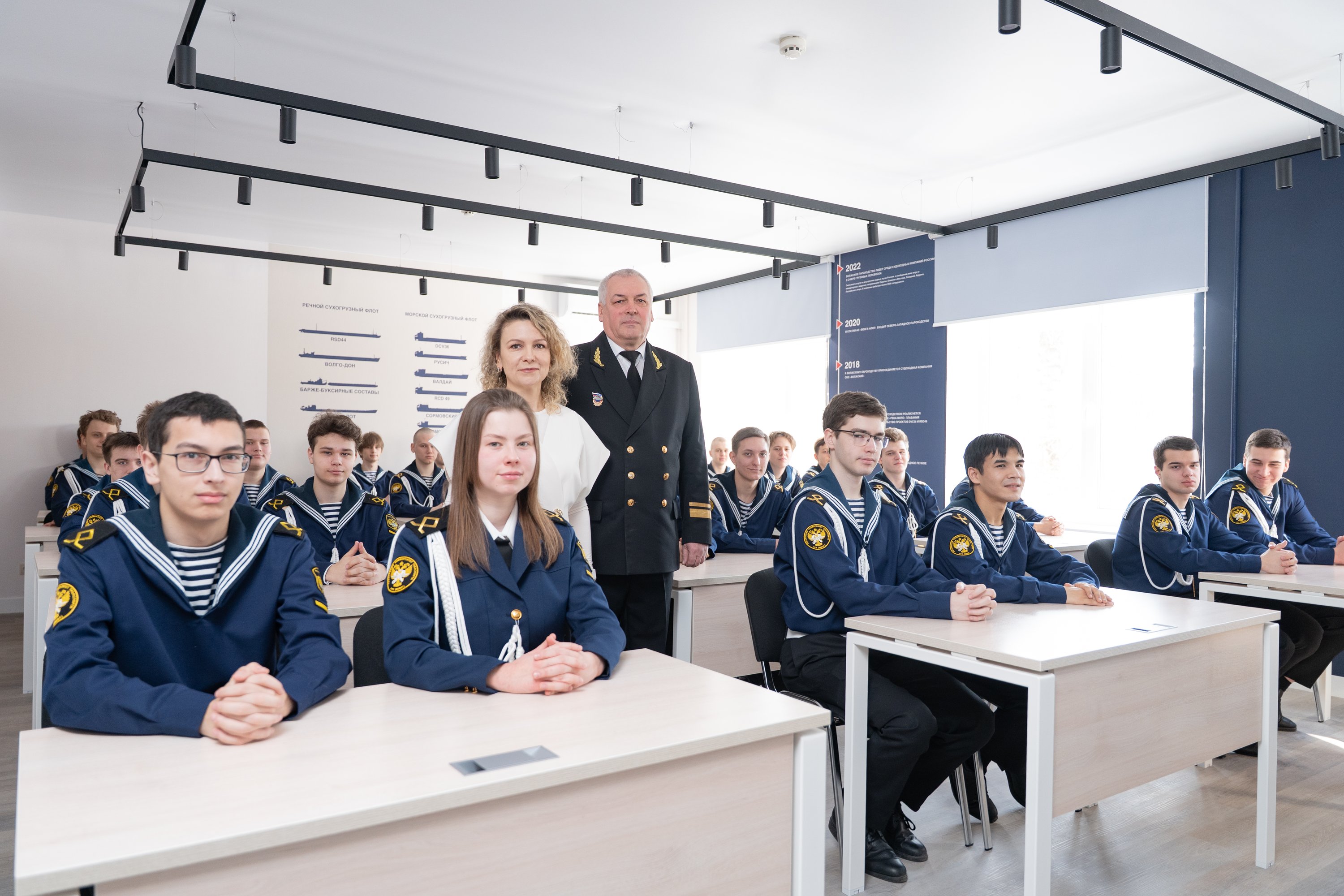 Российский университет транспорта совместно с судоходной компанией «Волжское пароходство» открыл в Академии водного транспорта новую брендированную аудиторию. На мероприятии присутствовали Директор АВТ РУТ Андрей Гузенко, директор по работе с персоналом Волжского пароходства Анастасия Царская и курсанты Академии.