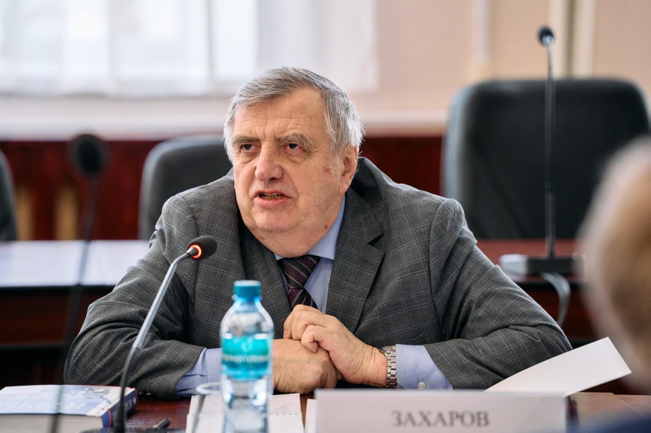 С первым докладом выступил главный научный сотрудник Института российской истории РАН Виктор Захаров — автор множества книг по истории, главный редактор журнала «Российская история», координатор создания общевузовского учебника по истории, который вышел в прошлом году. Особенность его в том, что он объединяет в себе историю страны и историю отраслей и поделён на шесть модулей, один из которых посвящён истории транспорта. Учебник написан в сотрудничестве с вузами. Виктор Захаров рассказал об истории Института, специфике академической науки и её связи с обществом, а также об издании нового учебника по истории для вузов.